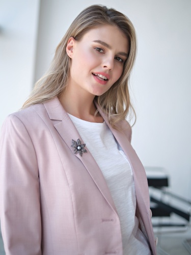 Женственная брошь в виде цветка с сердцевиной из искусственного жемчуга.