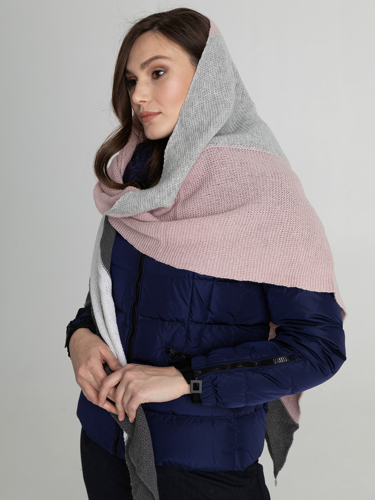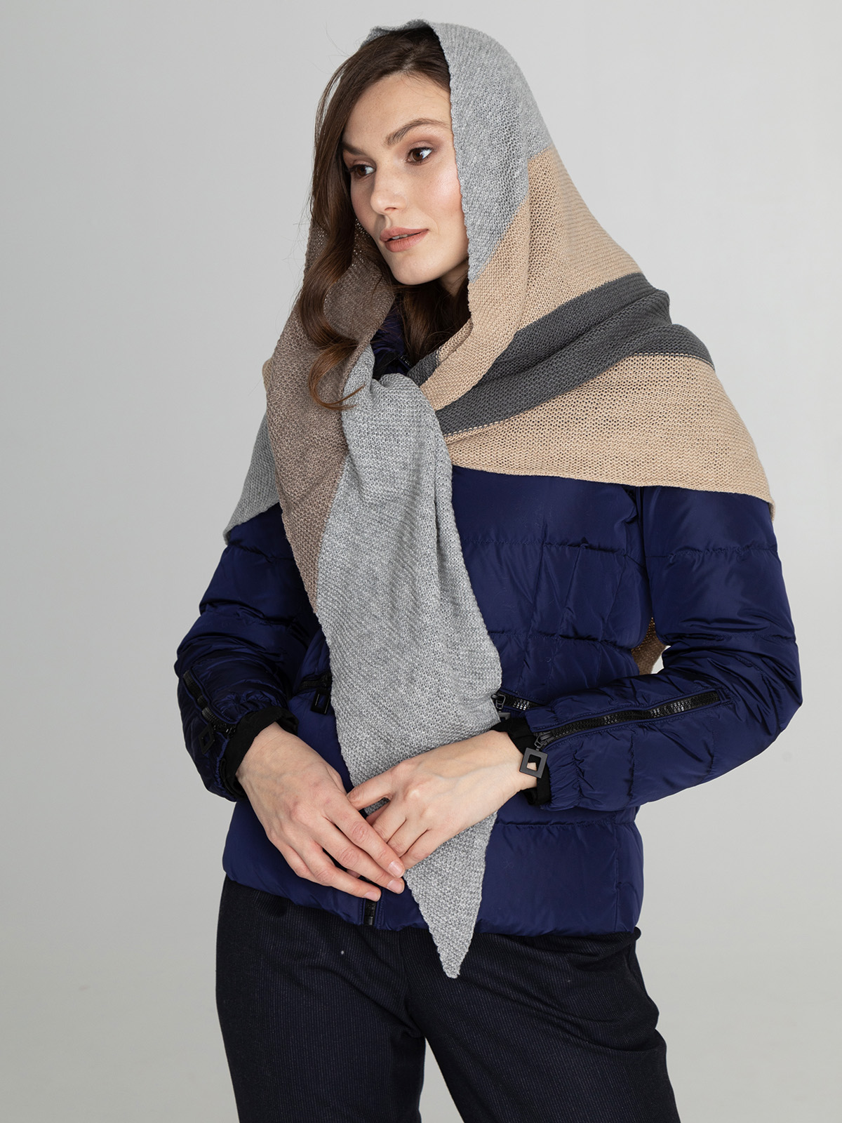 Косынка из смесовой шерсти с добавлением кашемира приятна на ощупь и хорошо сохраняет тепло. Универсальная базовая модель легко сочетается с различными нарядами.