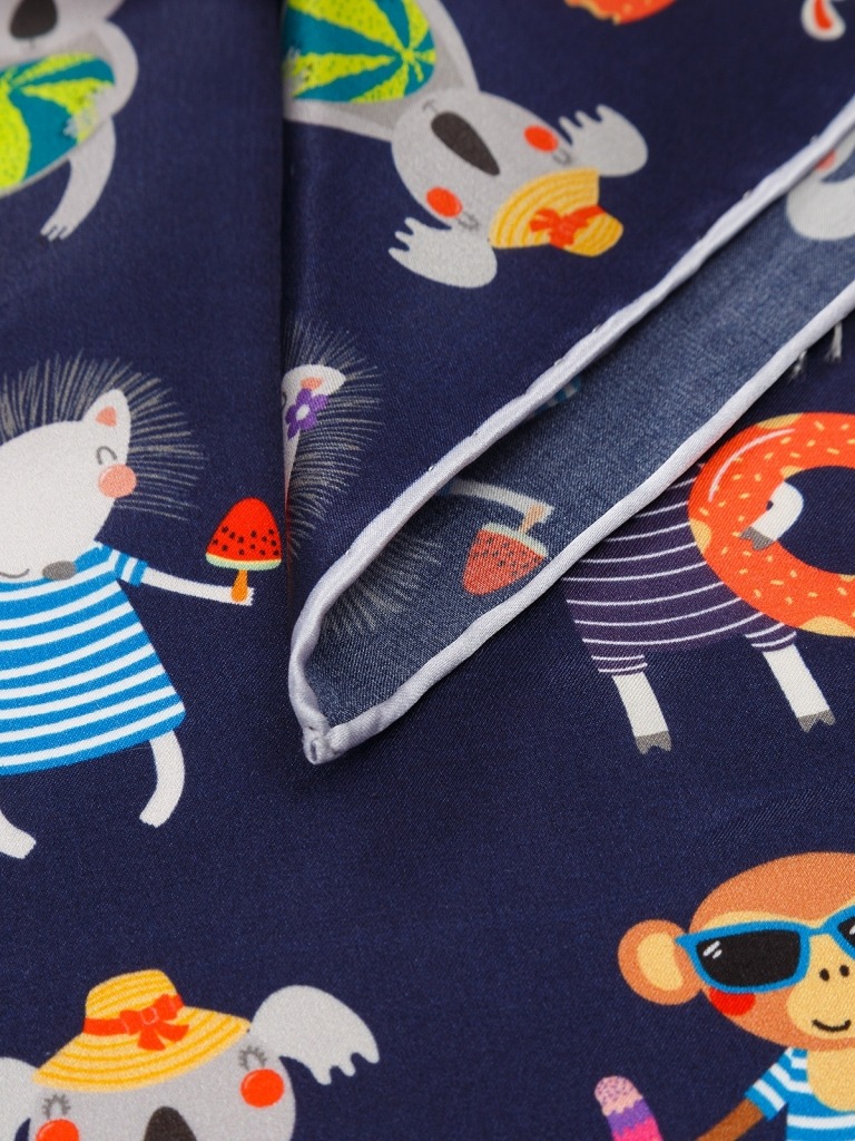 Платок с принтом из 100% шёлка. Тип плетения: Сатин. Размер: 53х53 см. Ручная подгибка.