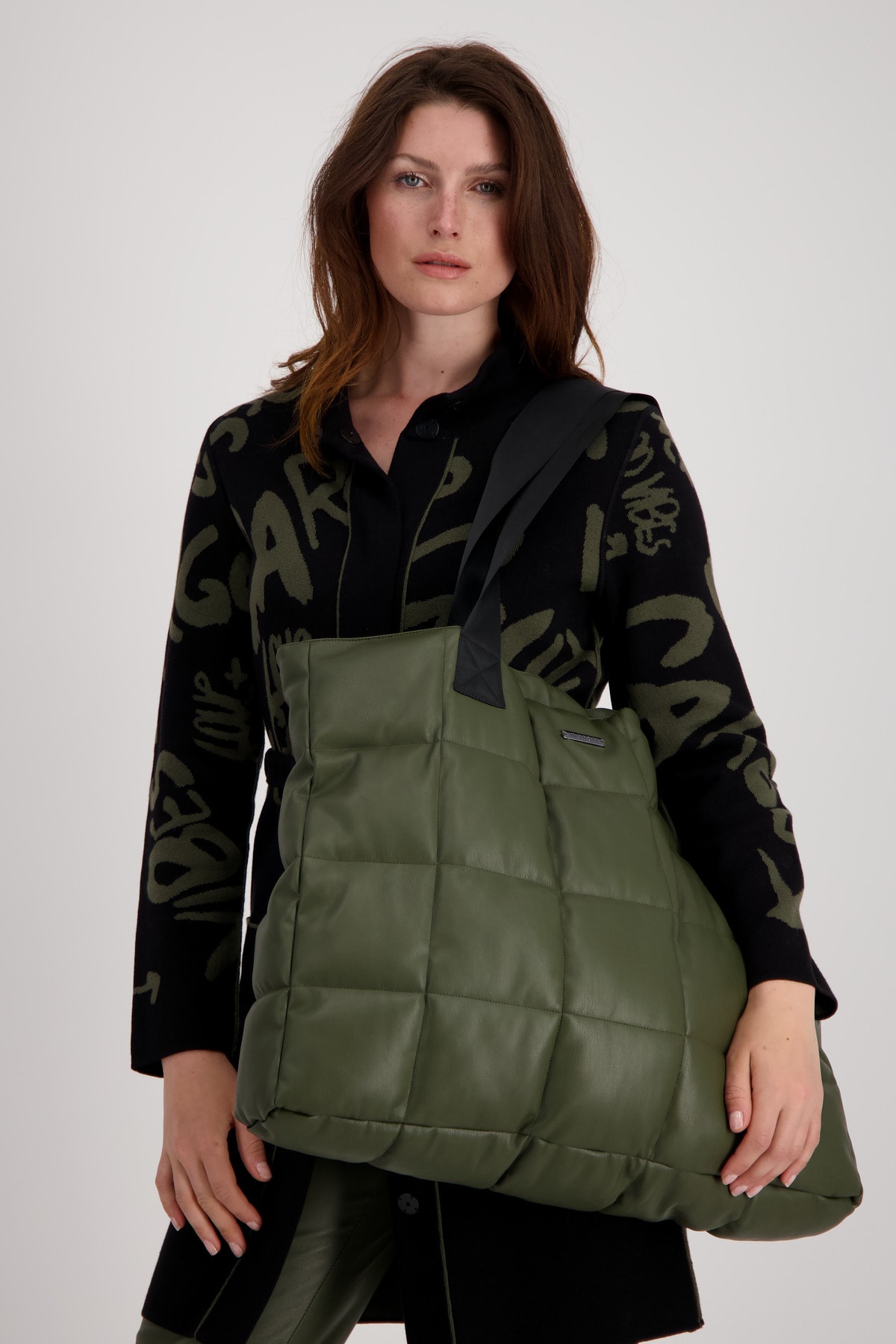 Модная стеганая прострочка этой сумки монари и две широкие ручки делают эту модель по-настоящему привлекательной. Внутри сумка имеет еще одно отделение, которое закрывается на молнию. Размер сумки 44 см в высоту и 55 см в ширину.