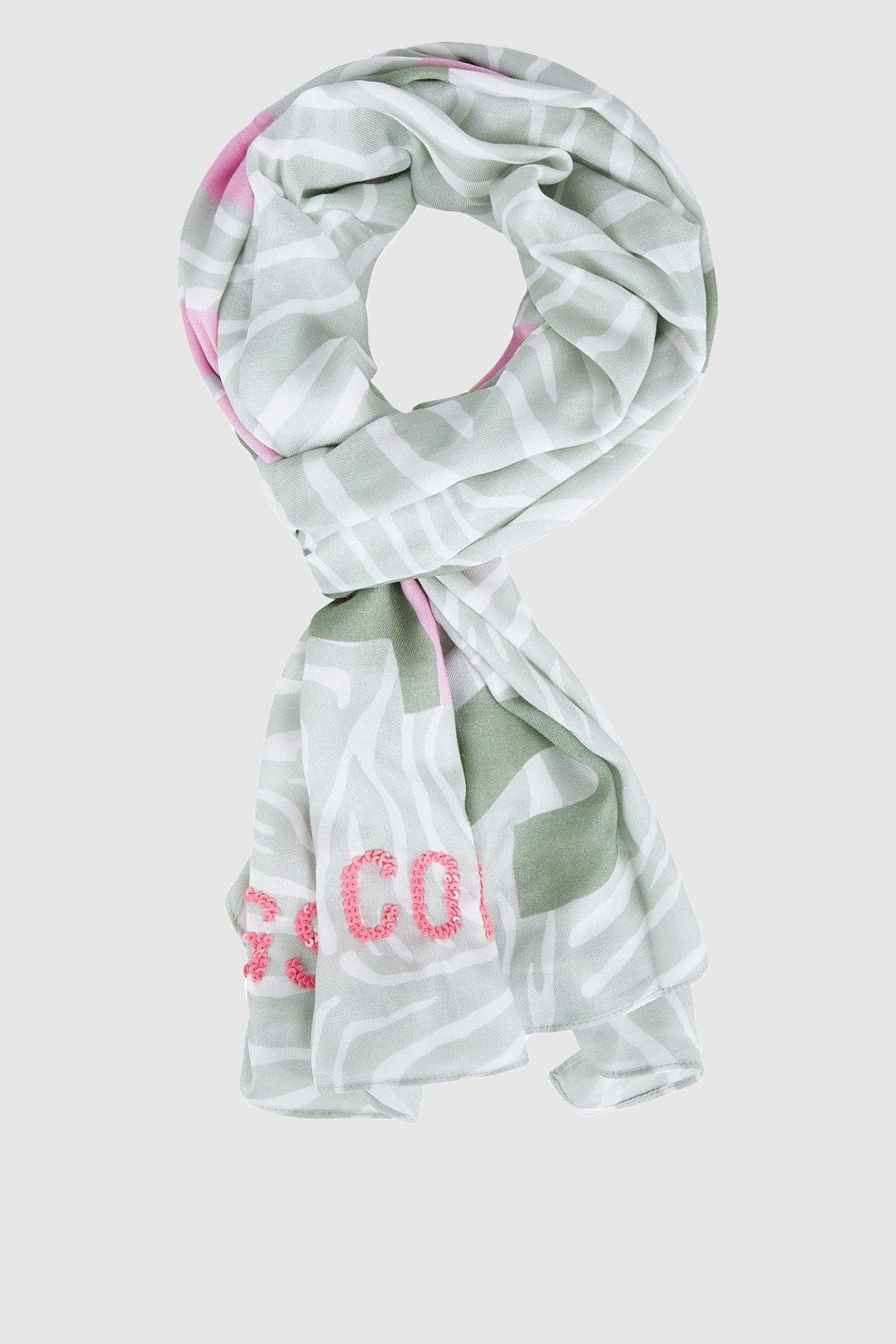 Этот платок из модала с имитацией саржи привлекает внимание своей вышивкой пайетками. Благодаря современному принту под зебру и мягкому ощущению он будет привлекать внимание к любому наряду.