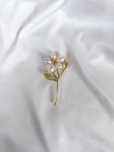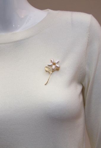 Оригинальная брошь в виде ромашки. Выполнена из комбинированных материалов с использованием искуственного жемчуга.