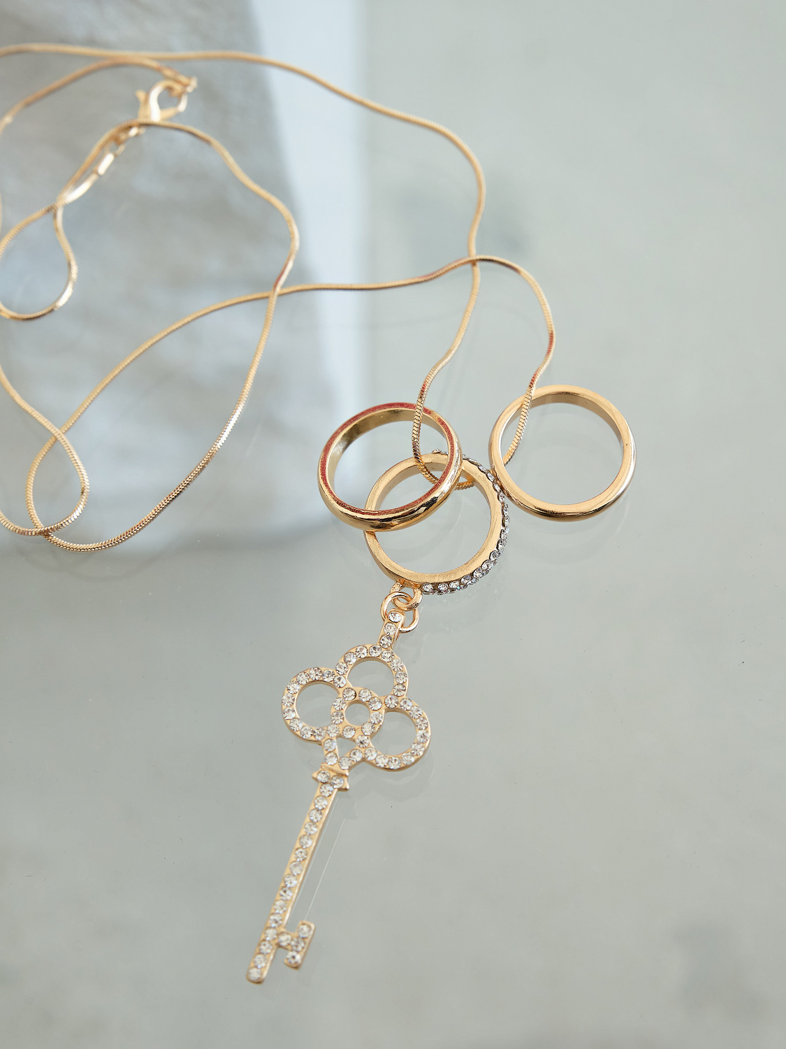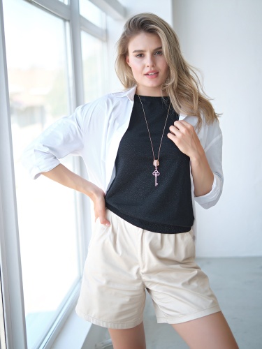 Подвеска в виде золотого ключика дополнит как повседневный, так и праздничный образ. Украшение инкрустировано вставками горного хрусталя.
