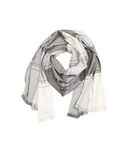 Теплый шарф из приятной на ощупь ткани. Орнамент в крупную клетку белого и серого цветов. Декор - вышивка нитью. Шарф является незаменимой вещью в холодное время года.