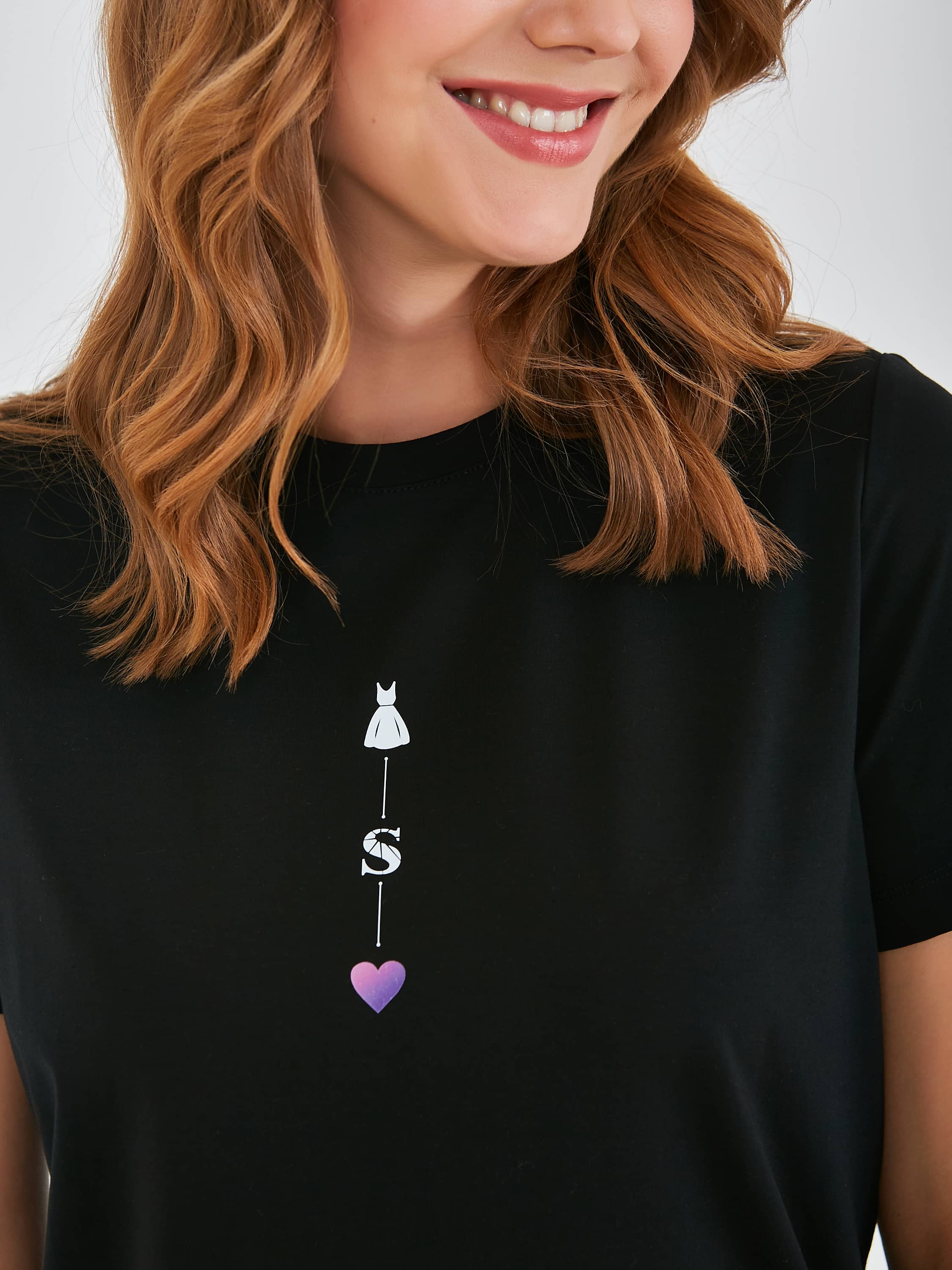 Яркая футболка средней длины прямого силуэта из легкого хлопка, мягкой вискозы и с добавлением эластана. Укороченные втачные рукава. Круглый вырез горловины.