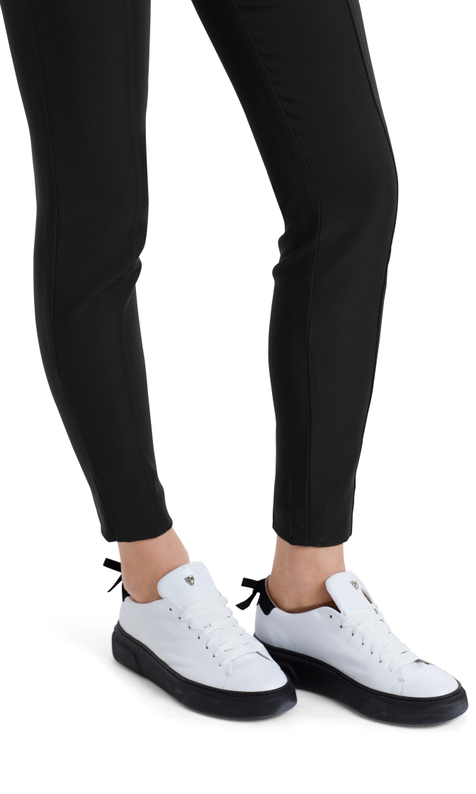 Стильные брюки со стрелками. Средняя посадка, силуэт slim подчеркивает стройные ноги. Застежка-молния сбоку. Эта базовая модель прекрасно комбинируется с различными вариантами верха и обуви.
