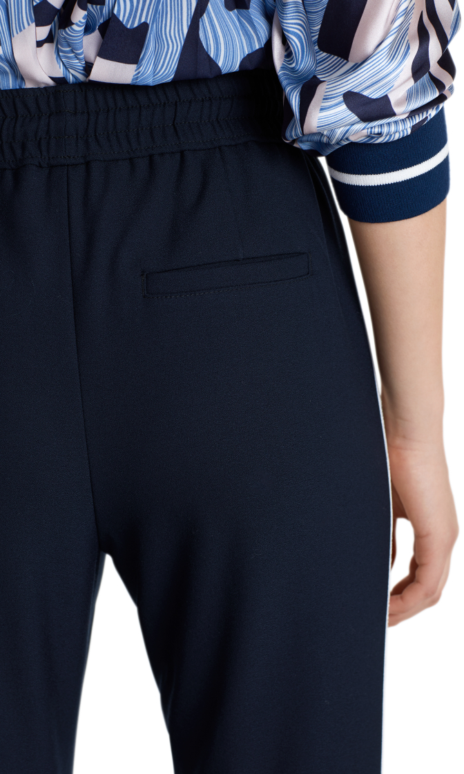 Брюки в спортивном стиле. Средняя посадка, силуэт slim, эластичная лента и кулиска на талии, карманы спереди, декоративные вставки контрастного цвета по бокам. Эта модель - отличный выбор для тех, кто придерживается активного образа жизни!