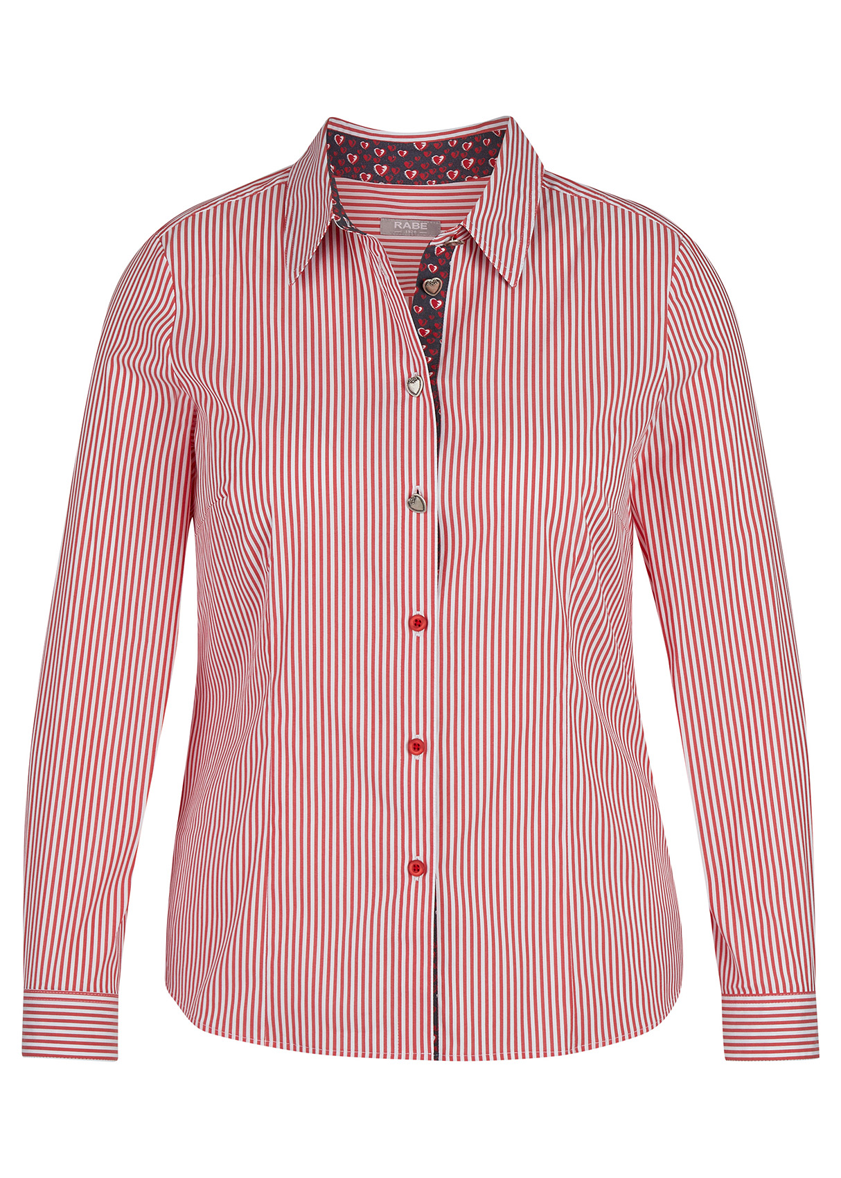 Полосатый дизайн - поистине вечная классика! Блузка-рубашка слегка приталенного силуэта. Рубашечный воротник, втачные рукава полной длины с манжетами. Пуговицы разной формы создают непринужденный образ. Элегантный акцент блузки - контрастная подкладка на воротнике и пуговичной планке. Приятный к телу материал из хлопковой смеси обеспечивает комфорт.
