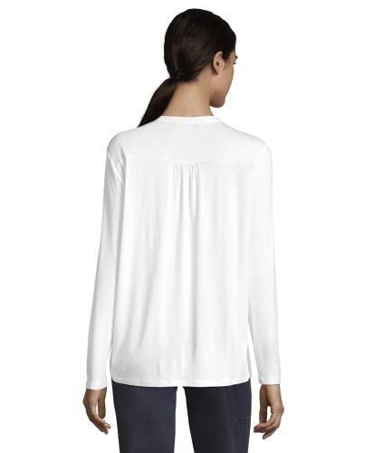 Белая блуза - необходимый элемент базового гардероба. Прямой покрой, V-образный вырез горловины, длинные рукава. Материал из вискозной смеси приятен к телу и обеспечивает комфорт. Эта простая элегантная модель является отличным компаньоном как для брюк, так и для юбки.