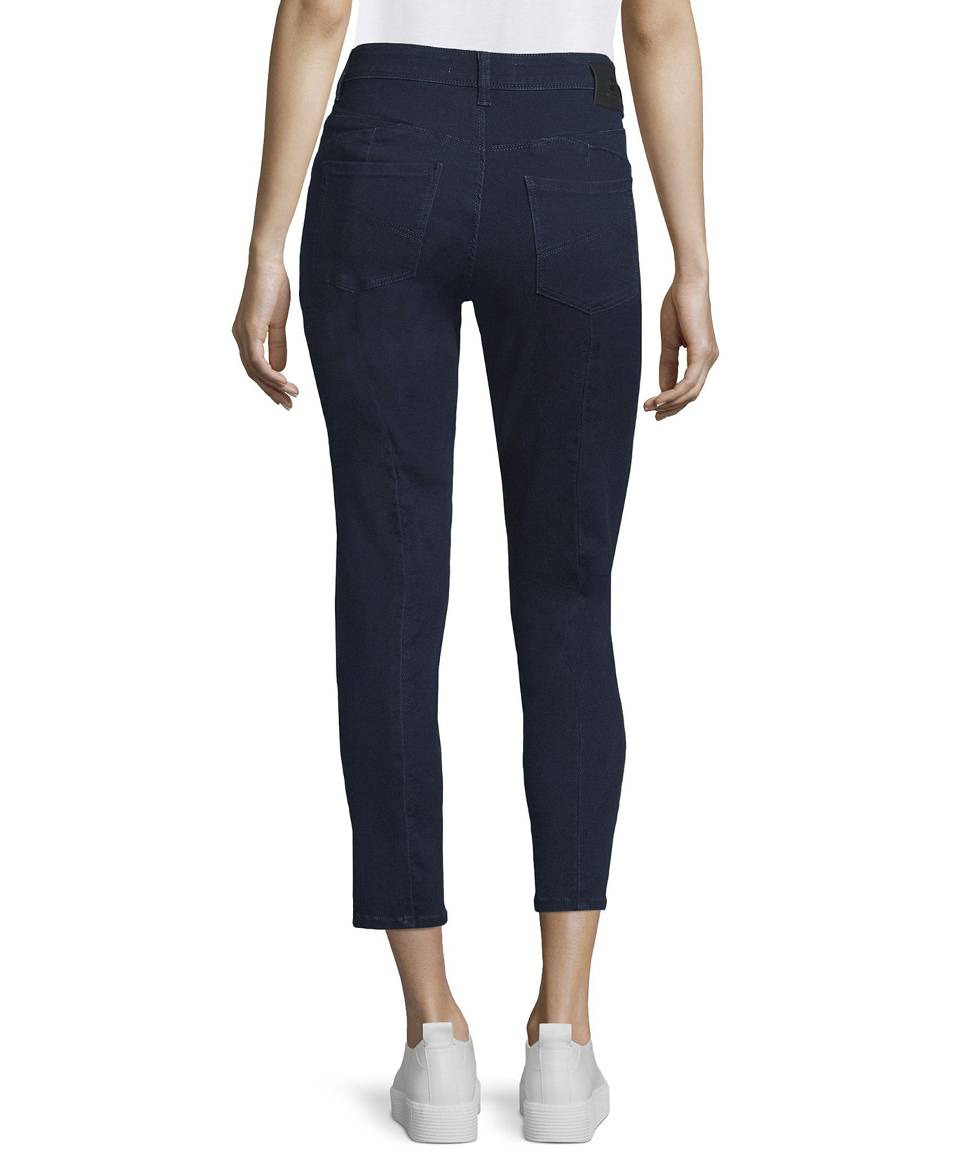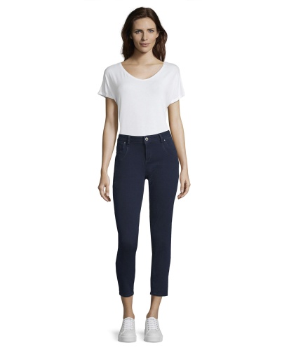Брюки 7/8 позволяют продемонстрировать стильную обувь. Силуэт slim подчеркивает стройные ноги. Материал из смеси хлопка, вискозы и эластана практичен и приятен к телу. Эти брюки - отличный летний вариант для образа в стиле кэжуал!