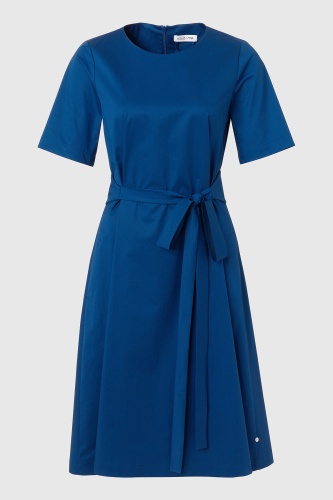 Платье миди - элегантная и женственная модель. Круглый вырез горловины, застежка-молния на спинке, рукава 1/2. Пояс-бант позволяет регулировать прилегание и подчеркивает достоинства фигуры. Материал из хлопковой смеси приятен к телу и обеспечивает комфорт. Это лаконичное по дизайну платье дает безграничный простор для создания модных сочетаний.