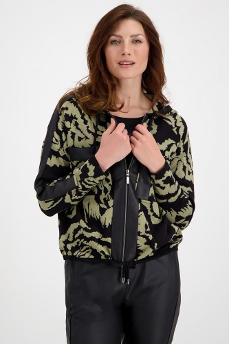 Джемпер на молнии с капюшоном – яркий вариант для образа в стиле кэжуал. Актуальная цветовая гамма и трендовый растительный принт. Рукав-реглан полной длины, один из рукавов украшает лампас. Ассиметричные вставки на груди, по низу изделия кулиска.