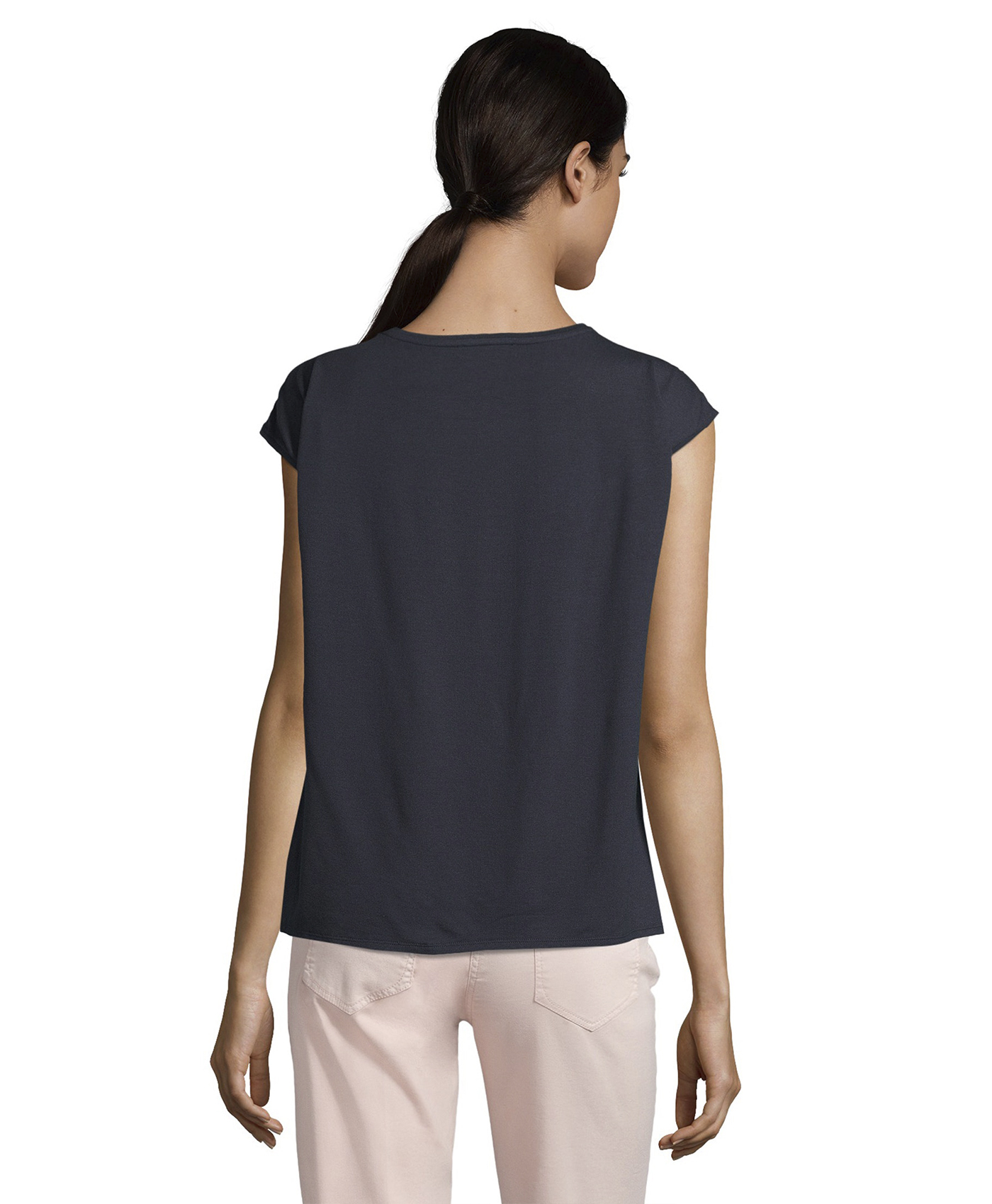 Топ в полоску - универсальная вещь в вашем гардеробе! Прямой покрой, короткие цельнокроеные рукава и вырез-лодочка создают непринужденный образ. Спинка изделия выполнена из однотонного материала. Вискозная смесь приятна к телу и обеспечивает комфорт. Этот топ идеально сочетается с любым однотонным низом и обувью.