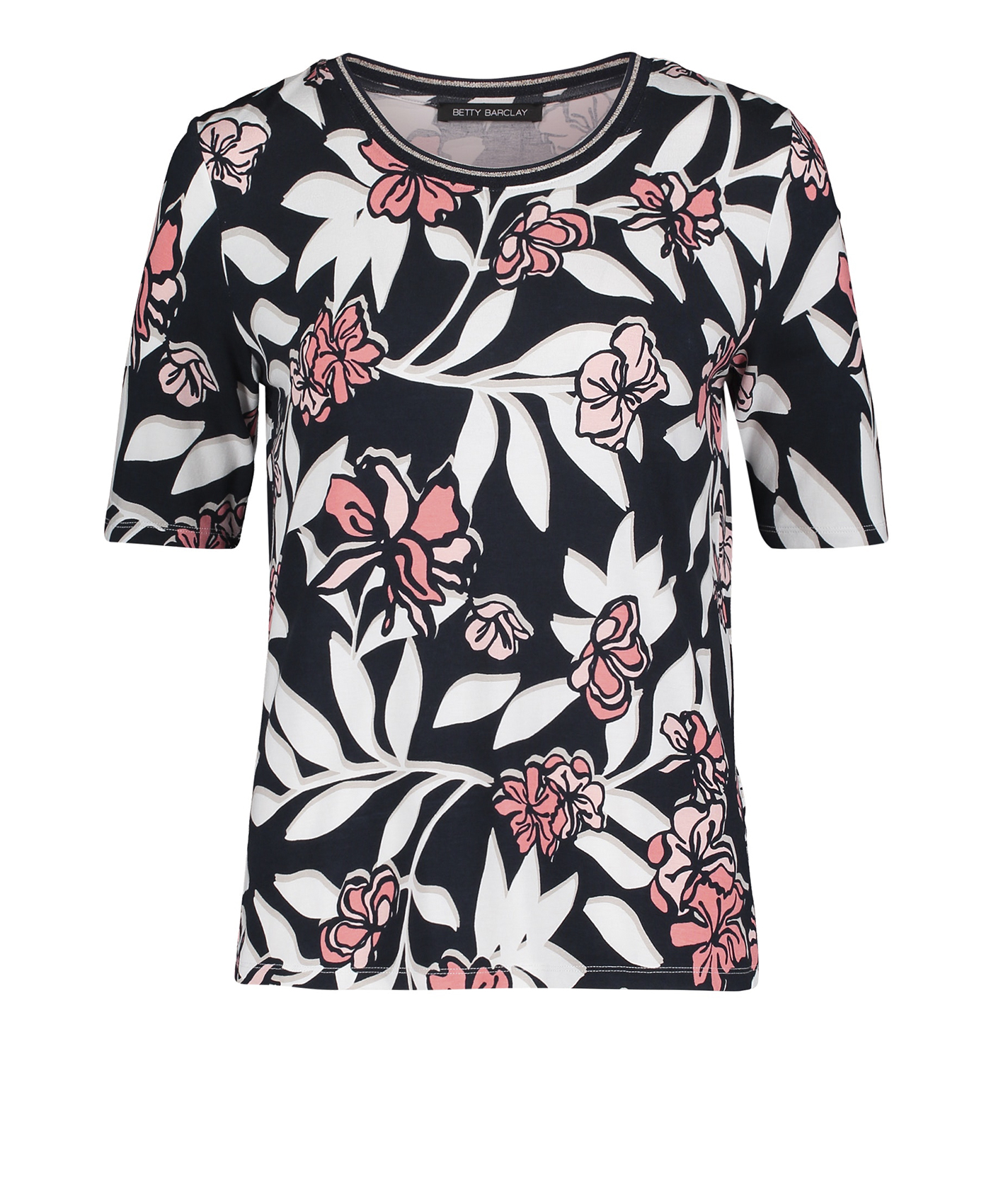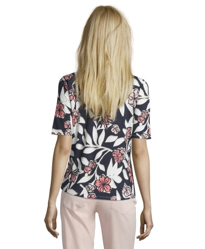 Цветочный принт - непреходящий тренд! Прямой покрой, круглый вырез горловины, рукава 1/2. Вискозная смесь приятна к телу и обеспечивает комфорт. Эта футболка идеально сочетается с любым однотонным низом и обувью.