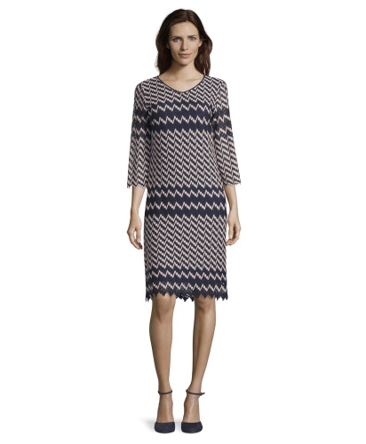 Платье с графическим узором - тренд сезона! Слегка приталенный силуэт, V-образный вырез горловины, рукава 3/4. Ажурный материал платья создает романтичный, женственный образ независимо от того, в туфлях вы или в кроссовках.
