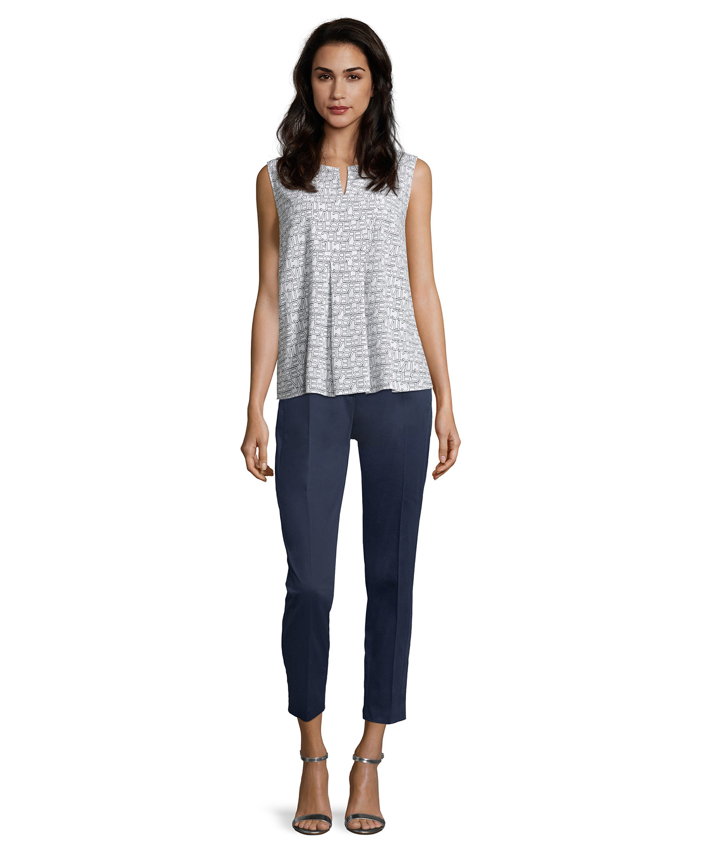 Свободный покрой - тренд сезона! Сплошной принт с надписью создает вау-эффект. Приятный к телу материал из смеси вискозы, тенсела и льна обеспечивает комфорт в ношении. Этот абсолютно стильный топ отлично сочетается с любым вариантом низа.
