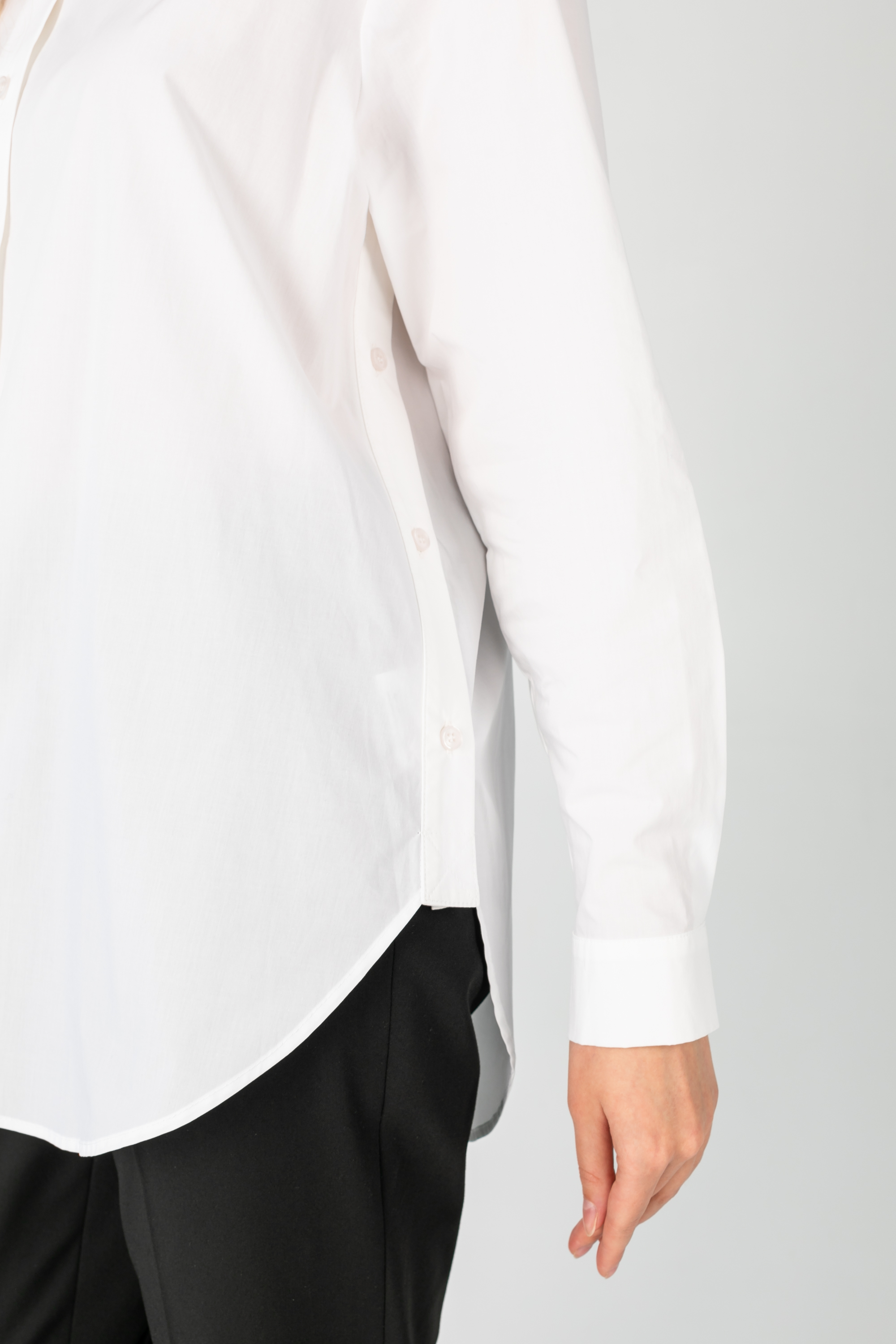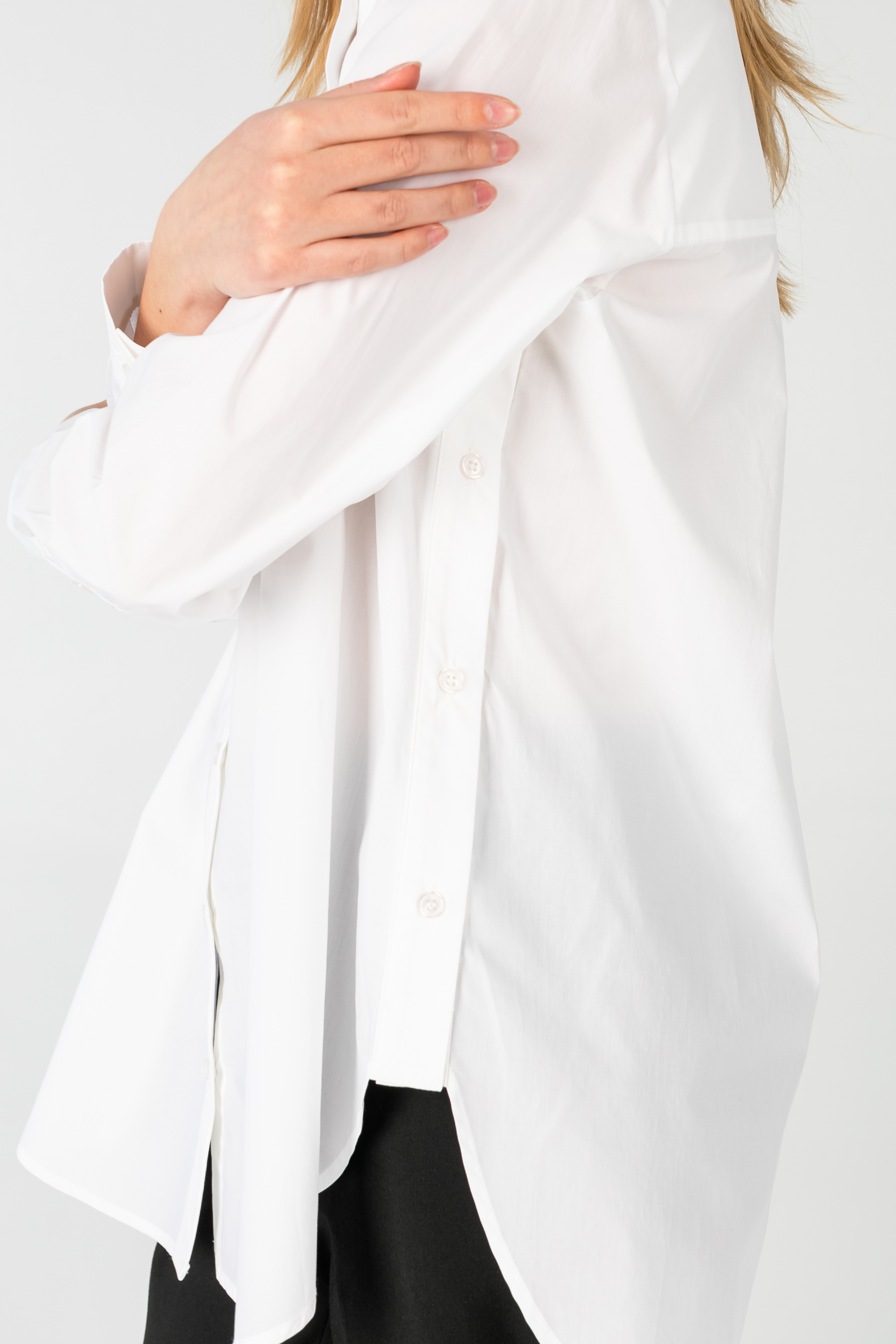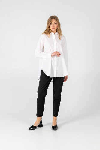 Классическая рубашка в 2-х цветах в стиле оверсайз с удлинением и декоративным элементом на спине.