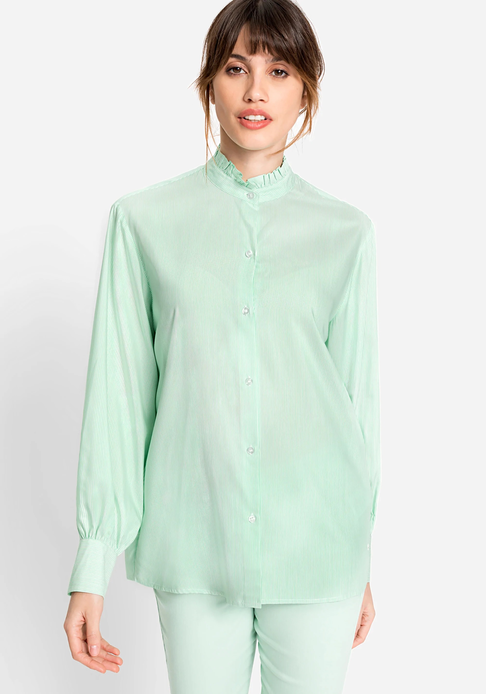 На сайте указаны Российские размеры. Легкая блузка с защипами и рюшами. По центру спины дополнена защипами, что обеспечивает непринужденную свободную посадку.