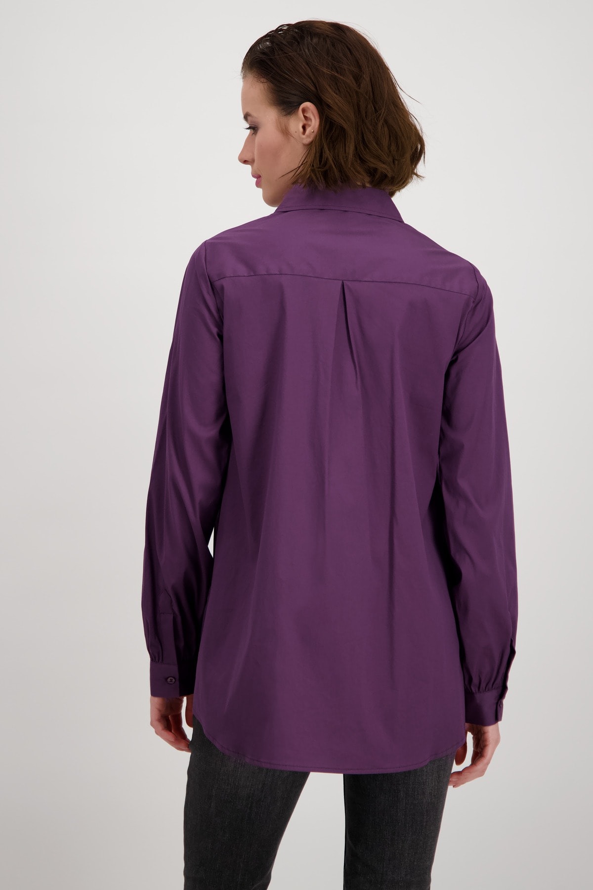 На сайте указаны российские размеры. Однотонная блуза-рубашка от monari. Стильная модель, которая вам понравится благодаря длинным рукавам с манжетами на пуговицах, длинному прямому крою с боковыми разрезами и удлиненному закругленному низу. Передняя часть имеет передний плечевой шов, накладной карман на уровне груди и планку на потайных пуговицах, а задняя часть украшена кокеткой с модной складкой. Рост модели 178 см Длина по спинке 44 размера составляет 79 см, а по переду – 74 см.