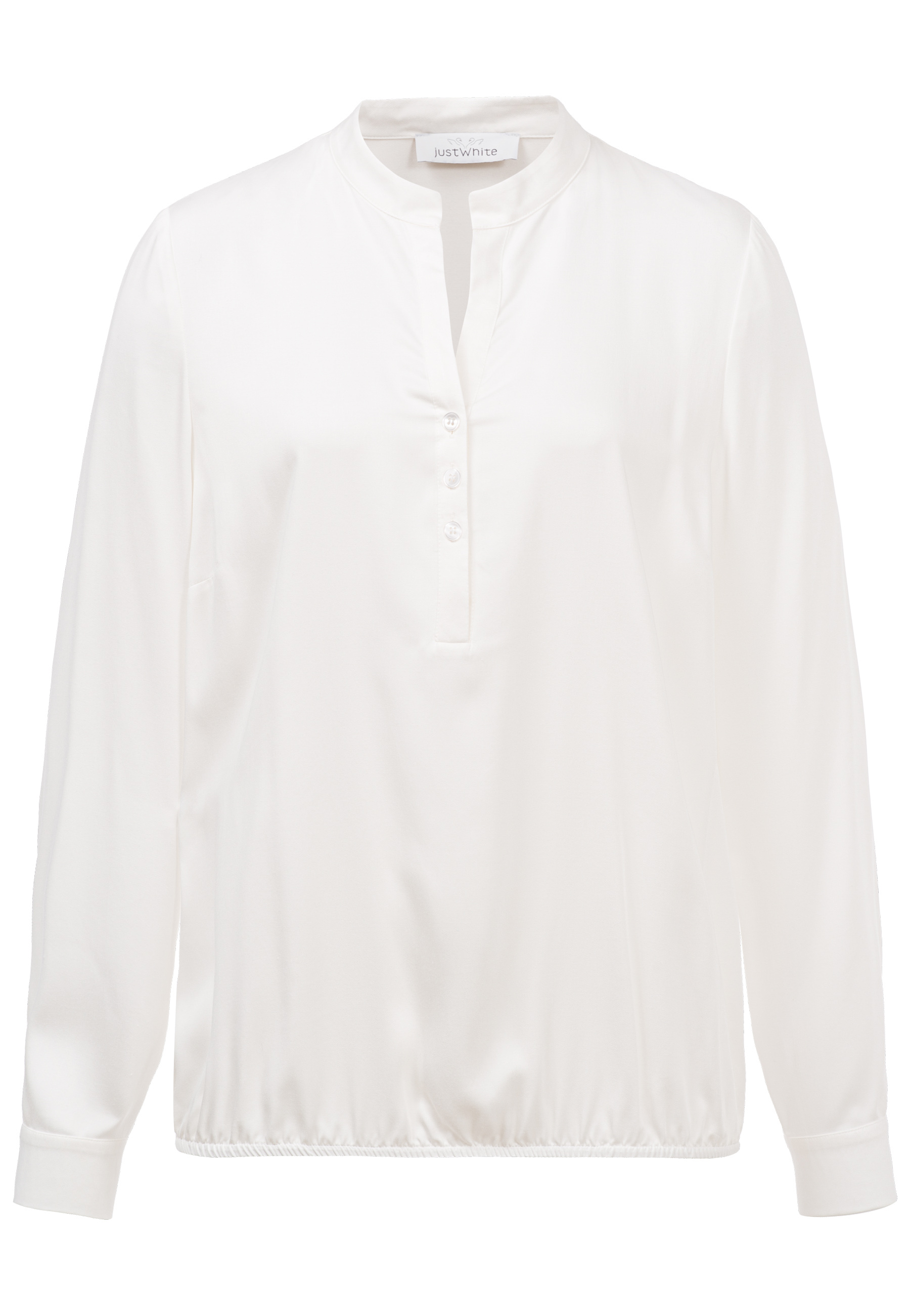 На сайте указаны российские размеры. Блузка-рубашка с длинными рукавами на резинке кремового цвета. Благодаря высококачественному материалу рубашка приобретает струящийся, легкий вид и слегка блестящий блеск. Блузка-рубашка идеально садится по фигуре благодаря резинке по низу. Свободный V-образный вырез с воротником-стойкой закрывает планка на половину пуговицы, эти же пуговицы есть и на манжетах. Наша модель ростом 177 см. Измерения для 44 размера: Окружность груди: 104 см Талия: 102 см Обхват бедер: 112 см. Длина по спинке: 62 см. Длина рукава: 62 см.