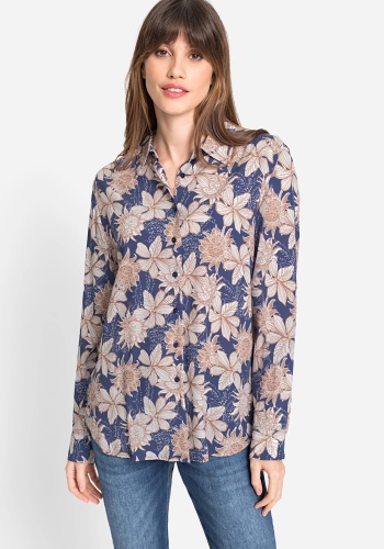 На сайте указаны Российские размеры. Блуза с женственным цветочным принтом передает классический силуэт и утонченный стиль с воротником, сплошной планкой на пуговицах и манжетами на пуговицах. Блузка сзади немного длиннее, чем спереди.