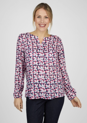 Элегантная блузка с воротником-стойкой, которая создаст неподвластный времени и шикарный образ. Блузка украшена красивым цветочным узором по всей поверхности, который придает нотку свежести и женственной утонченности. Длинные рукава обеспечивают дополнительный комфорт и стиль, а эластичные манжеты придают современный вид и обеспечивают удобную посадку. V-образный вырез тонко подчеркивает декольте и идеально дополняет общий образ. Эта блузка, изготовленная из высококачественной 100% вискозы, гарантирует вам удобную посадку и привлекательный внешний вид. Идеально подходит для разных случаев жизни: от повседневных повседневных нарядов до шикарных вечерних образов.