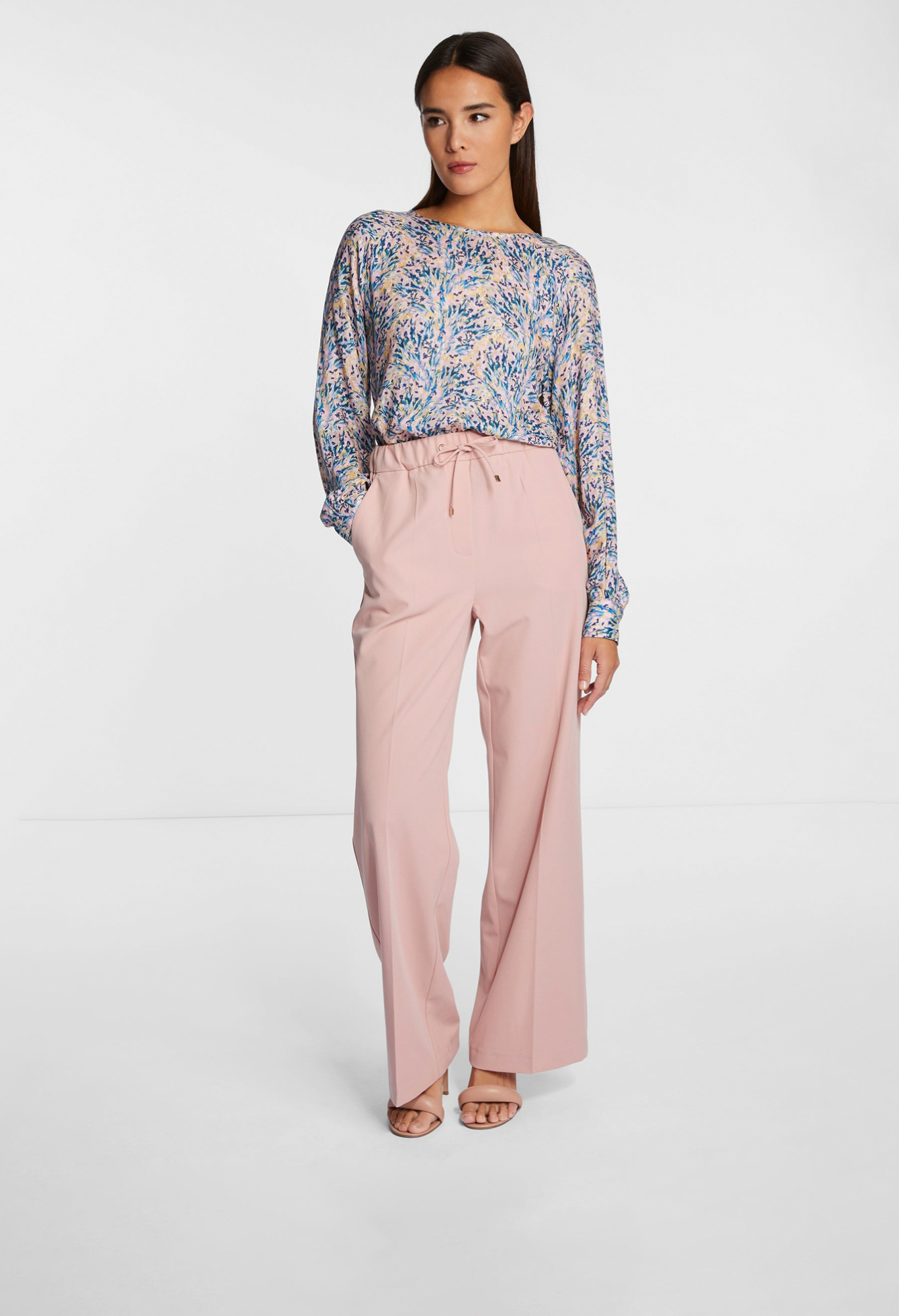 Блуза с размытым принтом и круглым вырезом – настоящая универсальная вещь. Свободный крой окутывает вашу фигуру мягкой струящейся вискозой. К красивым деталям относятся блестящие декоративные пуговицы на манжетах рукавов. Длина для размера 42: 70 см. Окружность груди для размера 42: 92 см.