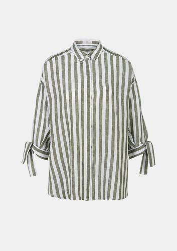 Мы предпочитаем классику и любим добавлять к ней особые штрихи, как вы можете видеть здесь, в этой мягкой, яркой льняной блузке в модном стиле блузки-рубашки. Широкий крой, слегка мешковатые рукава с модной тесьмой. Лен придает изделию естественный характер, а полоски добавляют шика.