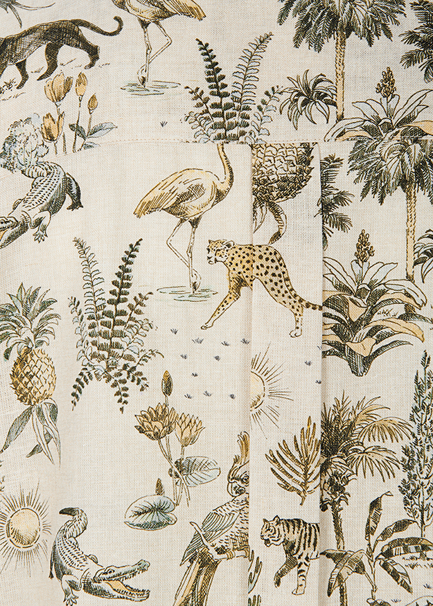 Красиво сшитая льняная блузка с «животным» принтом сафарино. Отличная базовая вещь, идеальная для непринужденной повседневной носки. Сочетайте с топом соответствующего цвета и расстегнутой блузкой. Высококачественная прохладная льняная ткань дышит и прекрасно сочетается с легкой летней одеждой.