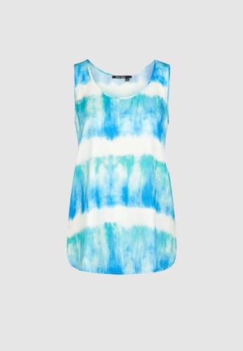 Блуза с круглым вырезом и принтом батик из небрежно драпированного японского атласа придает изысканный и свежий вид. Вырезы отделаны окантовкой. Изогнутый подол дополнен боковыми разрезами для еще большего комфорта и струящегося стиля.
