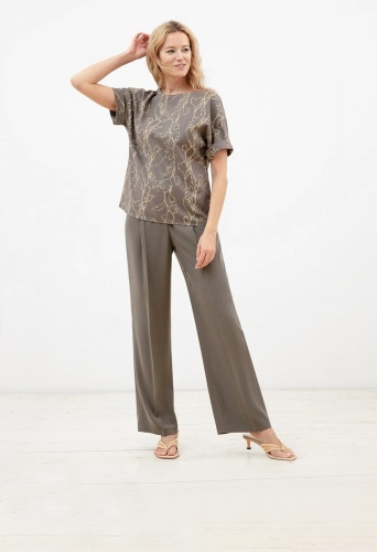 Базовая блуза в стиле оверсайз из хлопковой ткани с цветочным принтом прямого силуэта с коротким рукавом кимоно и горловиной лодочка.