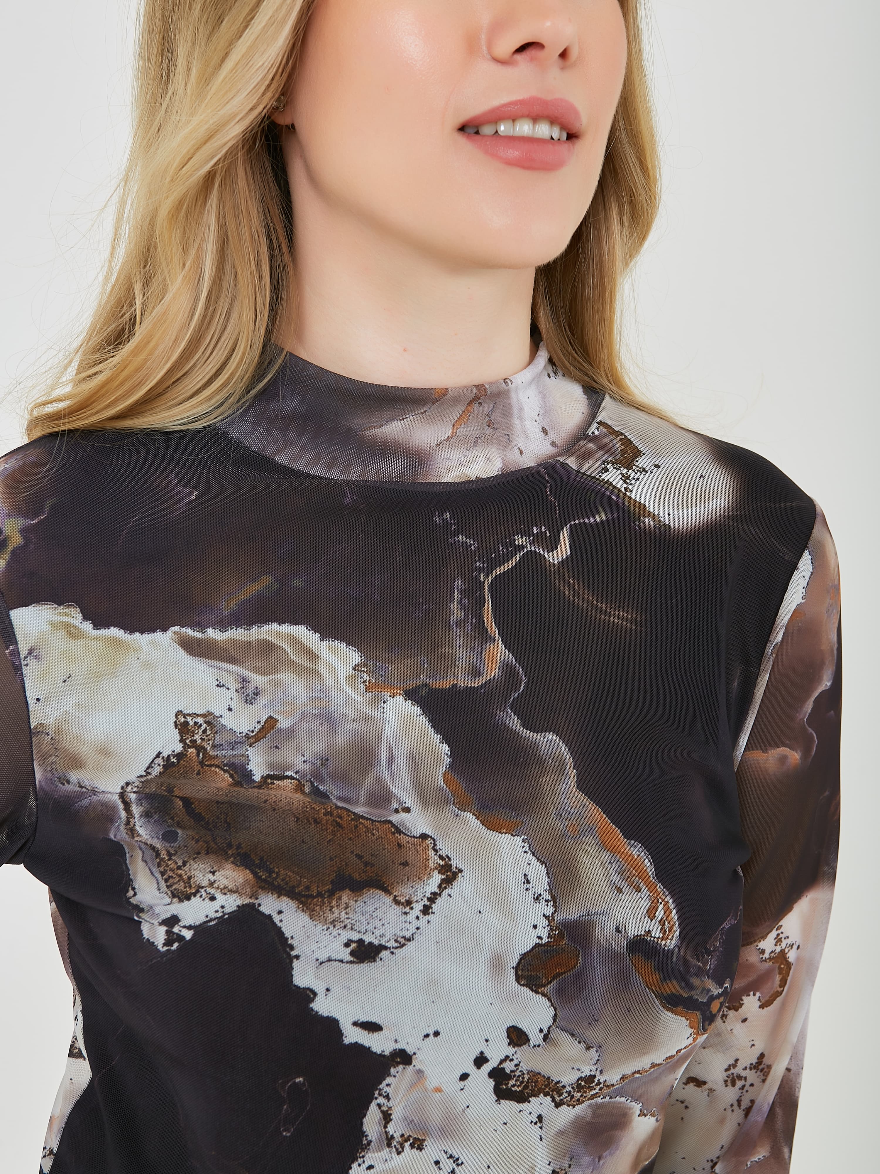 Сетчатая водолазка с дымчатым принтом. Полупрозрачная фактура придаёт лёгкость и изящество. Коллекция Осень-Зима 2024-2025. Капсула "Крадущийся тигр, затаившийся дракон".