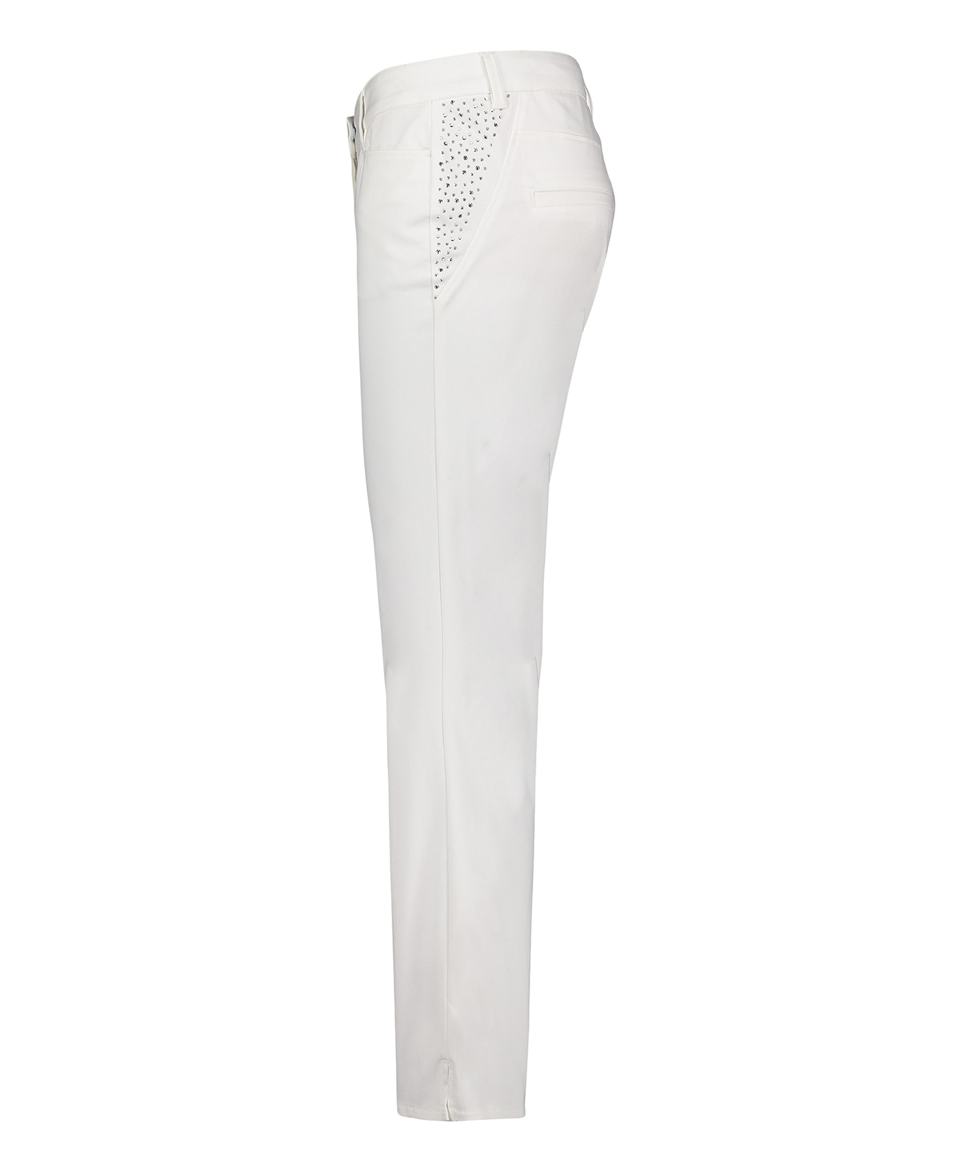 Укороченные брюки обращают на себя внимание. Универсальная средняя посадка, прямой крой. Небольшие разрезы по низу брючин. Декор стразами в области бедер придяет образу нотку гламура. Приятный к телу материал из хлопковой смеси обеспечивает комфорт в ношении. В сочетании как с футболкой, так и с блузой эти брюки создают стильный современный образ.