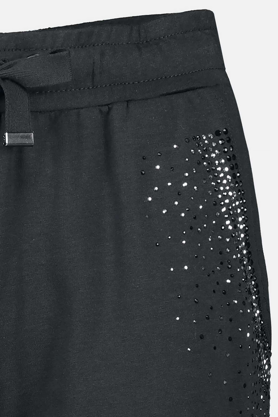 Брюки спортивного стиля. Эластичный пояс с кулиской обеспечивает удобную посадку и комфортное ношение. Мягкий и приятный телу материал. Боковые карманы украшены стразами. Сзади накладные карманы.