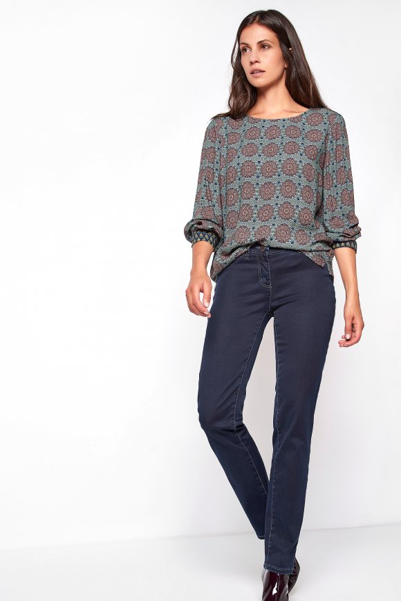 Классические джинсы отлично сочетаются с любыми предметами гардероба. Средняя посадка, прямой крой, карманы. Приятный к телу материал из хлопковой смеси обеспечивает комфорт.