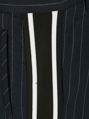 На сайте указаны Российские размеры. Зауженные брюки в полоску с лампасами – стильное решение для повседневного городского образа. Комфортная высокая посадка, притачной пояс со шлевками для фиксации ремня. Застежка на пуговицу и скрытую молнию.