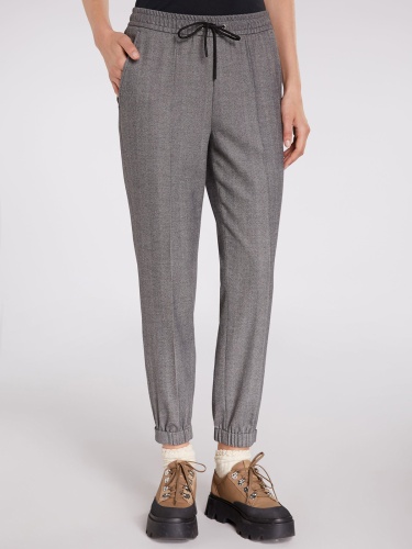 Брюки прямого кроя со стрелками. Притачной эластичный пояс с кулиской, также эластичные резинки по низу брючин. Брюки комфортны в ношении и подойдут для образа в повседневном городском стиле.