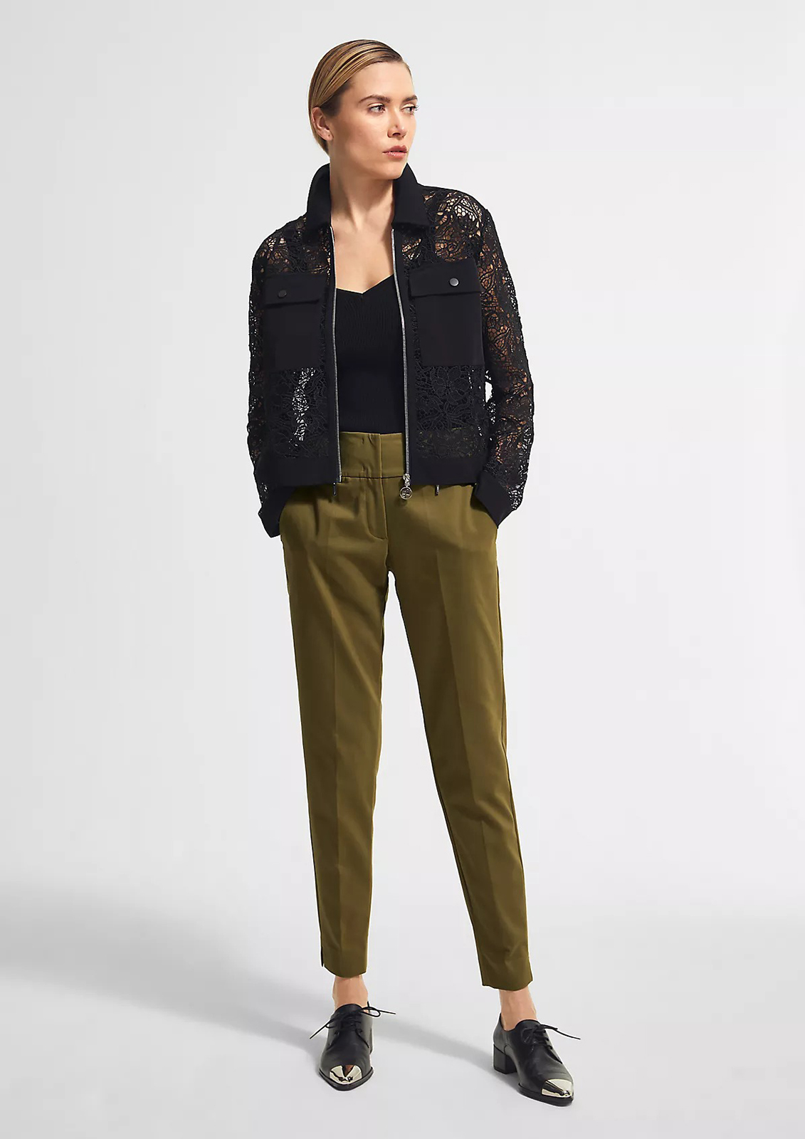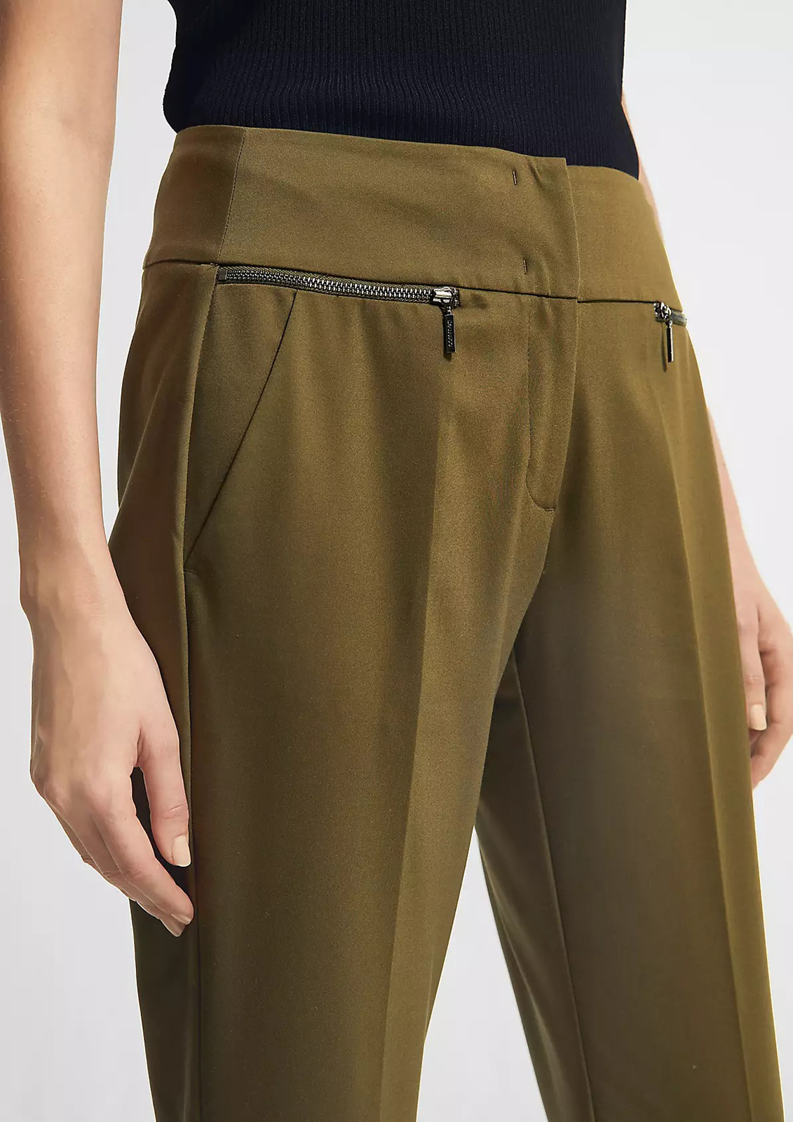 Прямые брюки со стрелками. Широкий притачной пояс без шлевок. Комфортная средняя посадка. Врезные карманы на молнии.