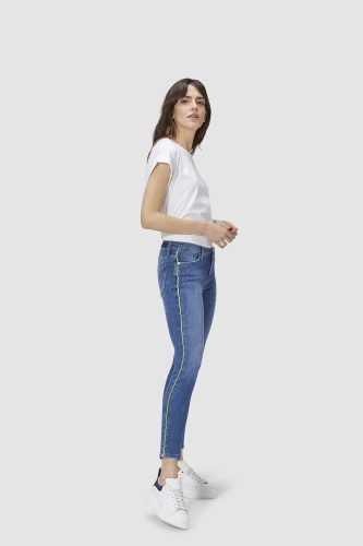 Супер-мягкие джинсы воплощают тренд на неоновые элементы очень элегантно - с тонкой тесьмой по бокам. С ними вы можете сделать модное заявление, которое не доминирует над общим образом. Средняя посадка, 5 карманов, силуэт брюк выгодно подчеркивает ноги. Стильная модель, изготовленная из итальянского денима премиум-класса, отлично подходит к различным вариантам верха: от объемных рубашек до нежных блузок.