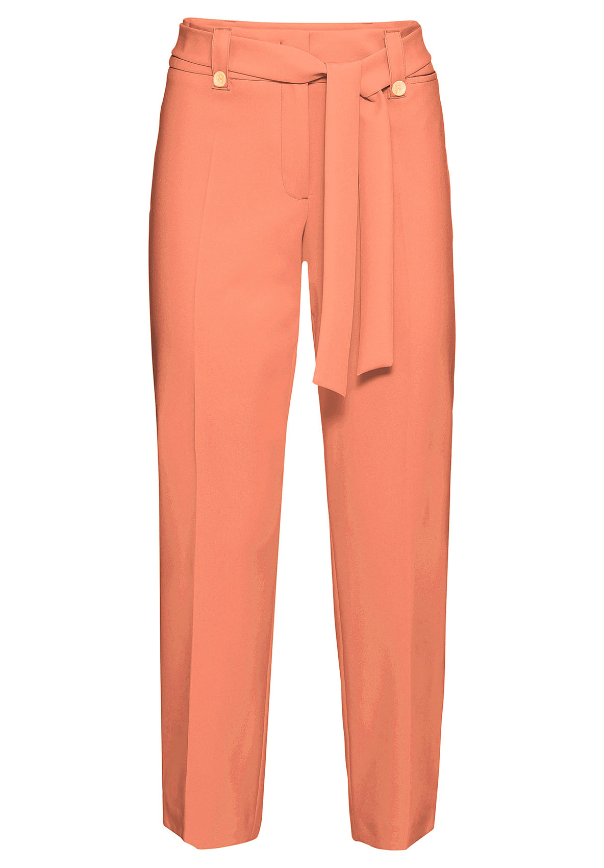 Шикарный выбор для теплого сезона. Пояс-галстук в цвет брюк создает стильный акцент. Укороченная нога и свободный силуэт обеспечивают удобную посадку. Мягкий и качественный эластичный материал. Укороченные брюки абсолютно обязательны в новом сезоне для всех модниц. Брюки прекрасно сочетаются с блузками и футболками. • в модном мандариновом цвете, с поясом-галстуком • качественный эластичный материал • свободная посадка, укороченная длина • длина около 68 см