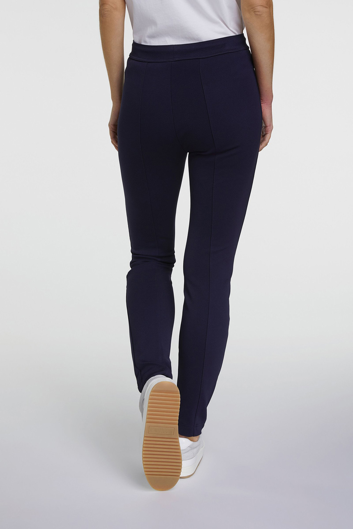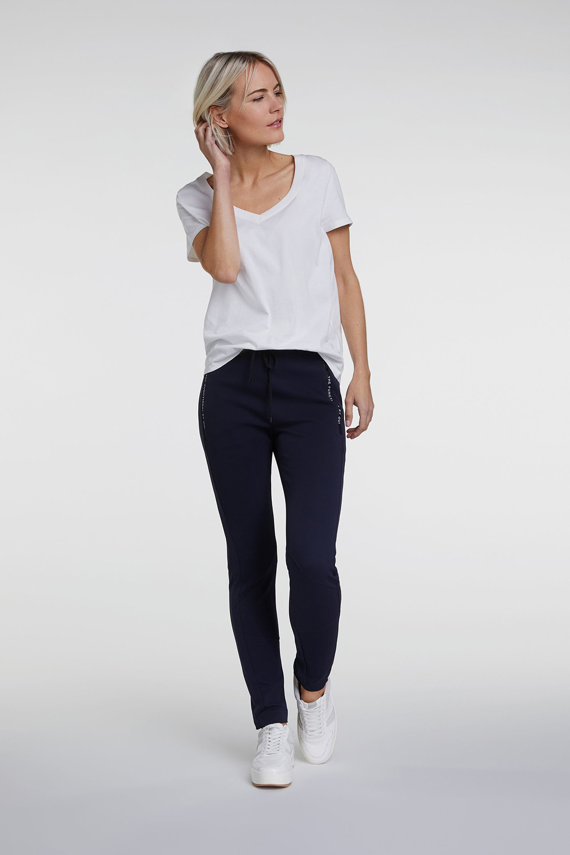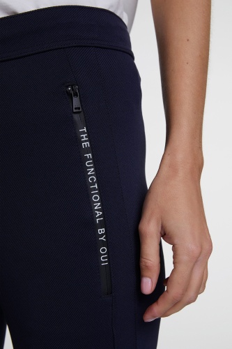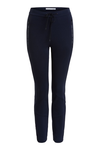 Спортивные брюки помогут угнаться за модой! Удобная средняя посадка, пояс с кулиской. Силуэт slim подчеркивает стройные ноги. Карманы на молниях декорированы тесьмой. Эти брюки - отличный выбор для прогулок и занятий спортом.