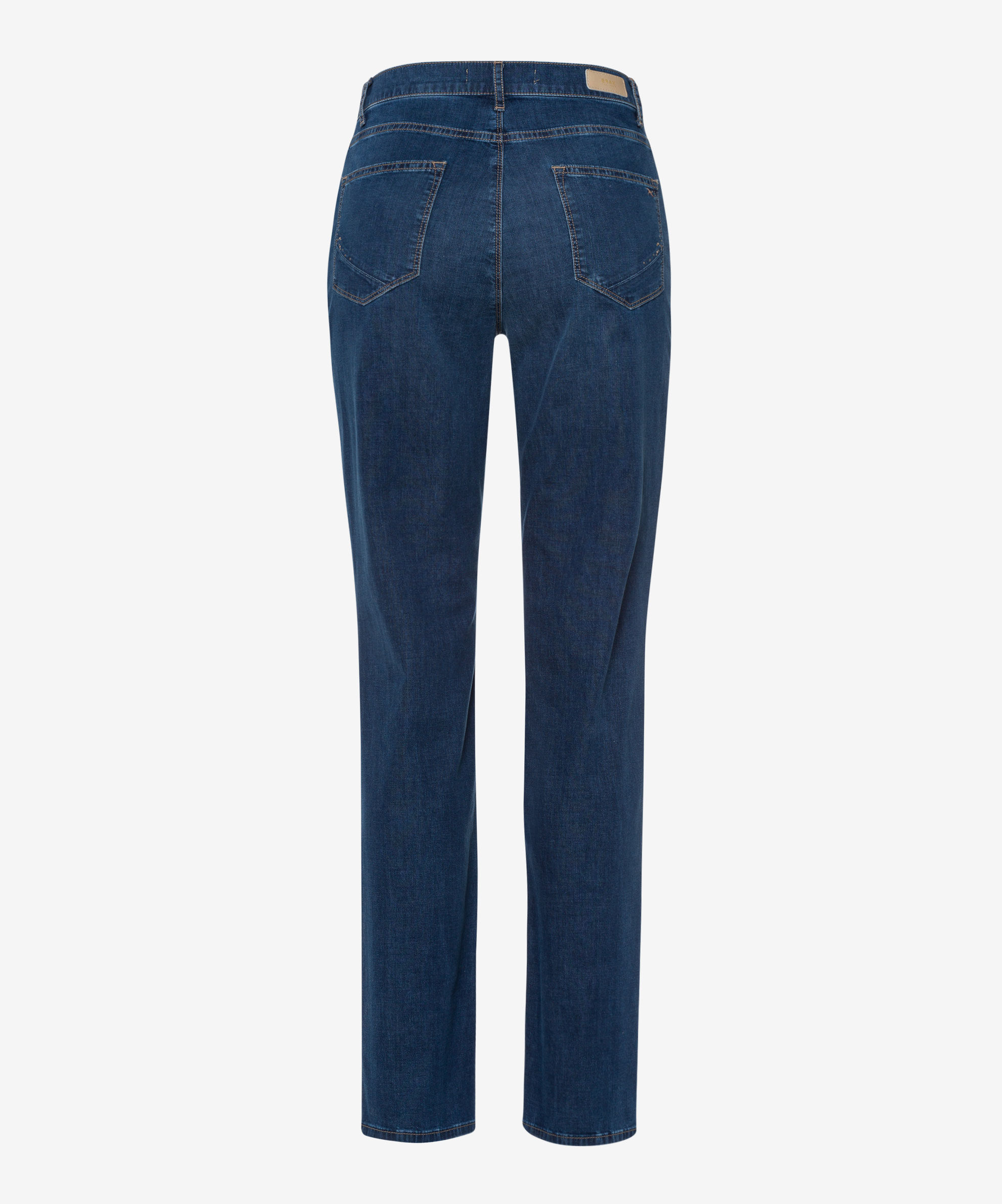 Однотонные темно-синие джинсы силуэта слим. Высокая посадка обеспечивает комфортное ношение. Пояс со шлевками, застежка на пуговицу и скрытую молнию. Врезные карманы спереди и два накладных кармана сзади.