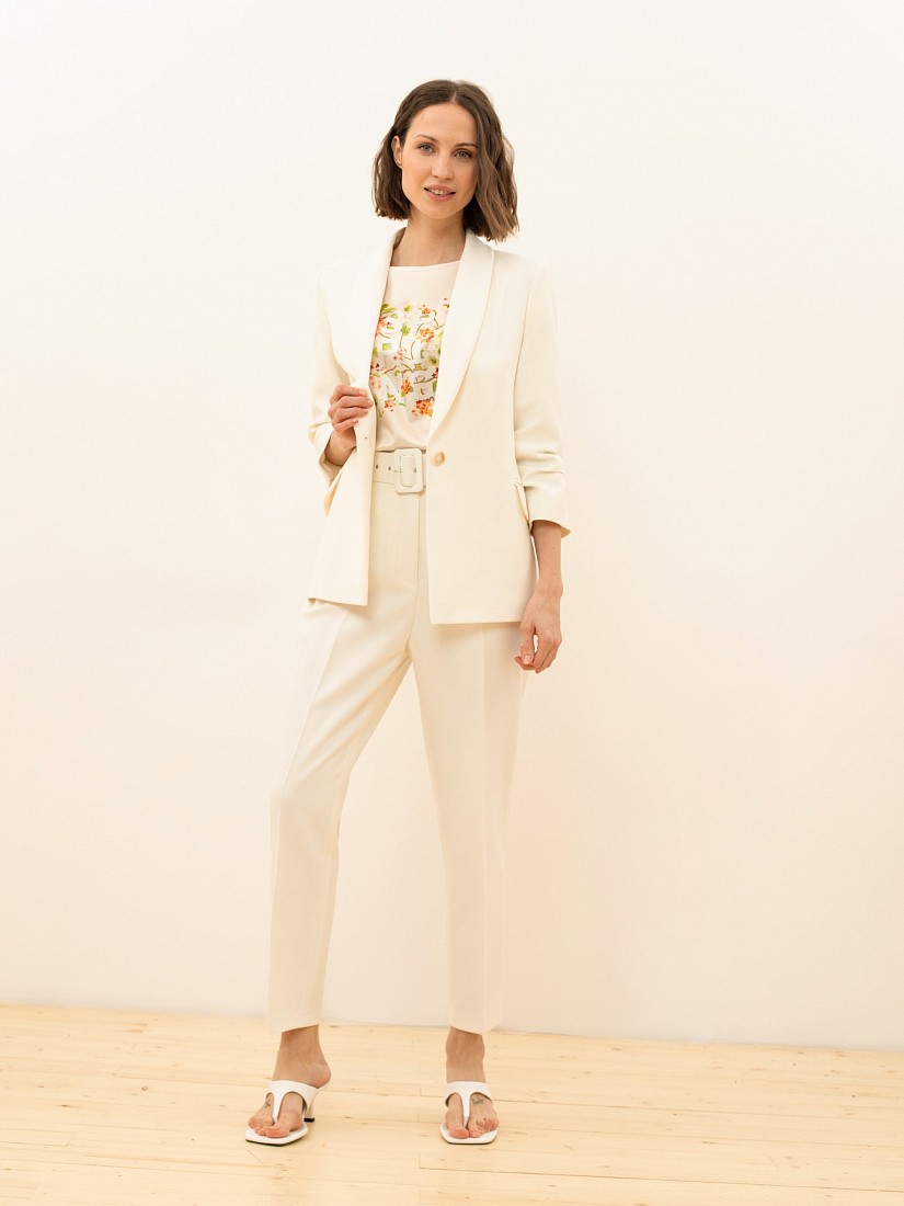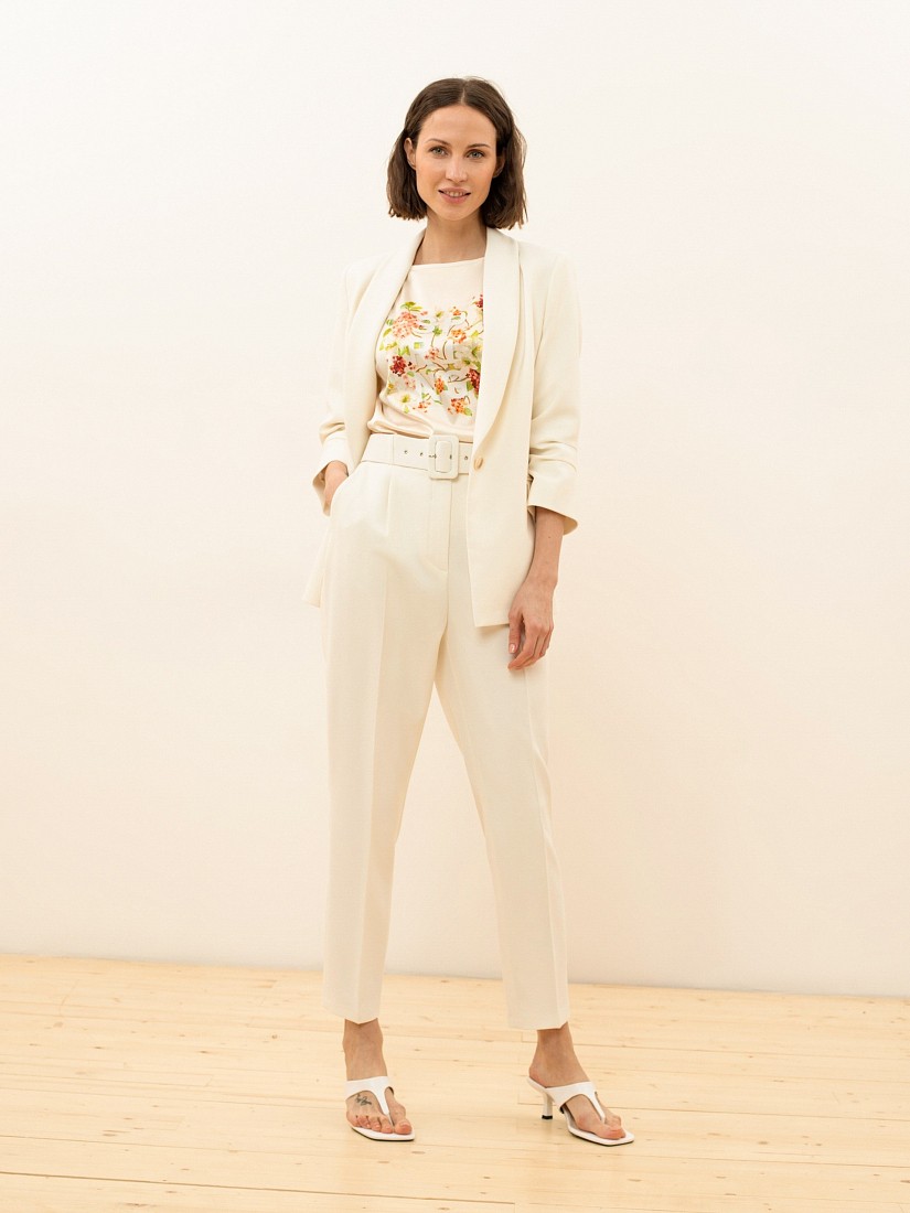 Однотонные классические брюки с высокой посадкой - элемент базового делового гардероба. Идеально подходят для офиса или повседневного ношения. Длина 7\8 оголяет щиколотку и визуально стройнит силуэт, а стрелки вытягивают рост. Застежка на молнию и брючный крючок. В комплекте идет широкий ремень с пряжкой, обтяжные основной тканью изделия.