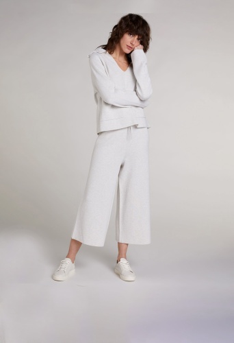 Однотонные кюлоты в нежной расцветке для создания уютного и стильного образа. Эластичный пояс на кулиске обеспечивает комфорт ношения. Брюки отлично сочетать в монохромном образе с пуловером из этой коллекции.