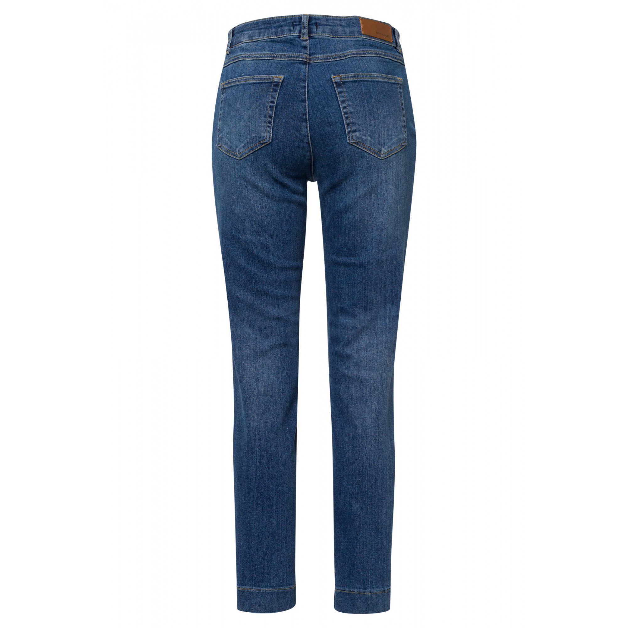 Джинсы чинос идеально сидят по фигуре и невероятно удобны благодаря эластичному материалу. На модели присутствует пояс и шлевки для ремня, косые карманы и скрытая передняя застежка. Длина внутренней стороны ноги в размере 44 = 72см