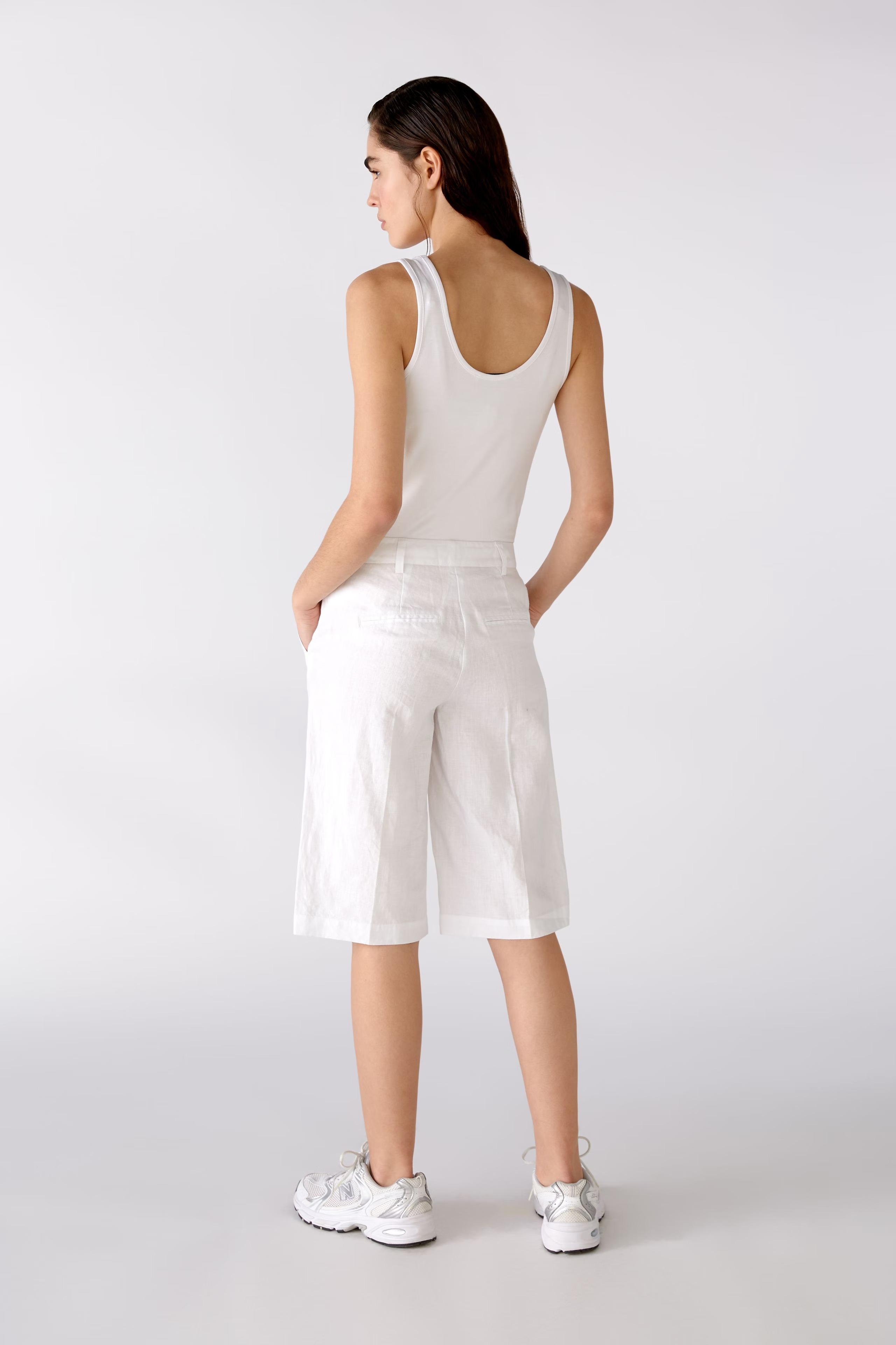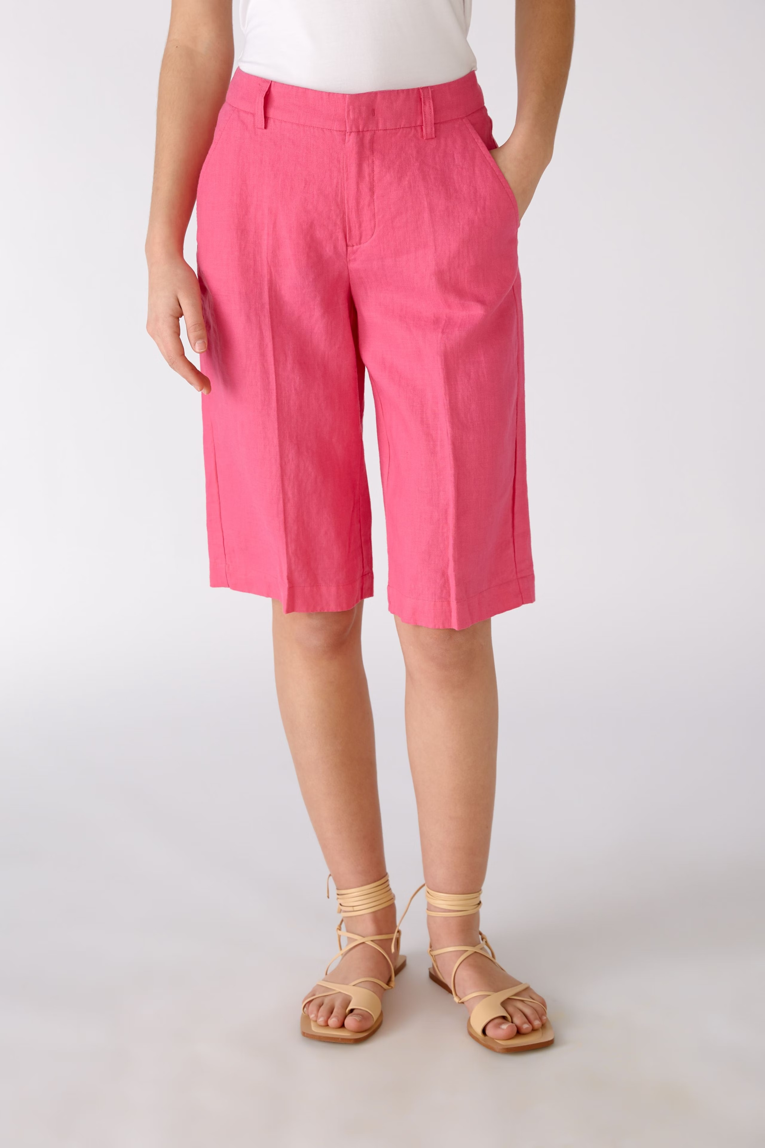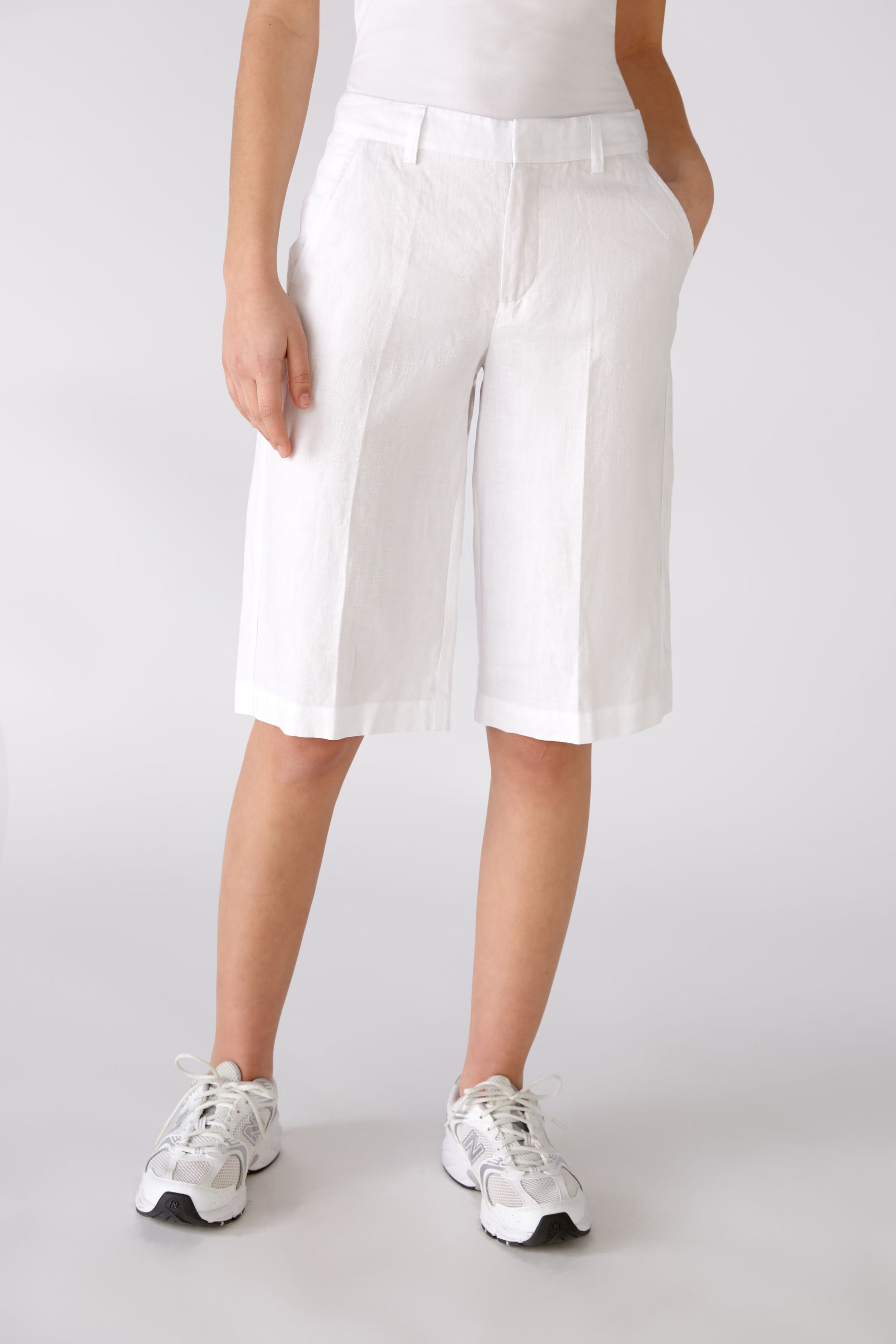 На сайте указаны российские размеры. Повседневные льняные шорты с элегантной складкой и практичными боковыми и задними карманами. Можно сочетать с трикотажем, футболкой или блейзером.