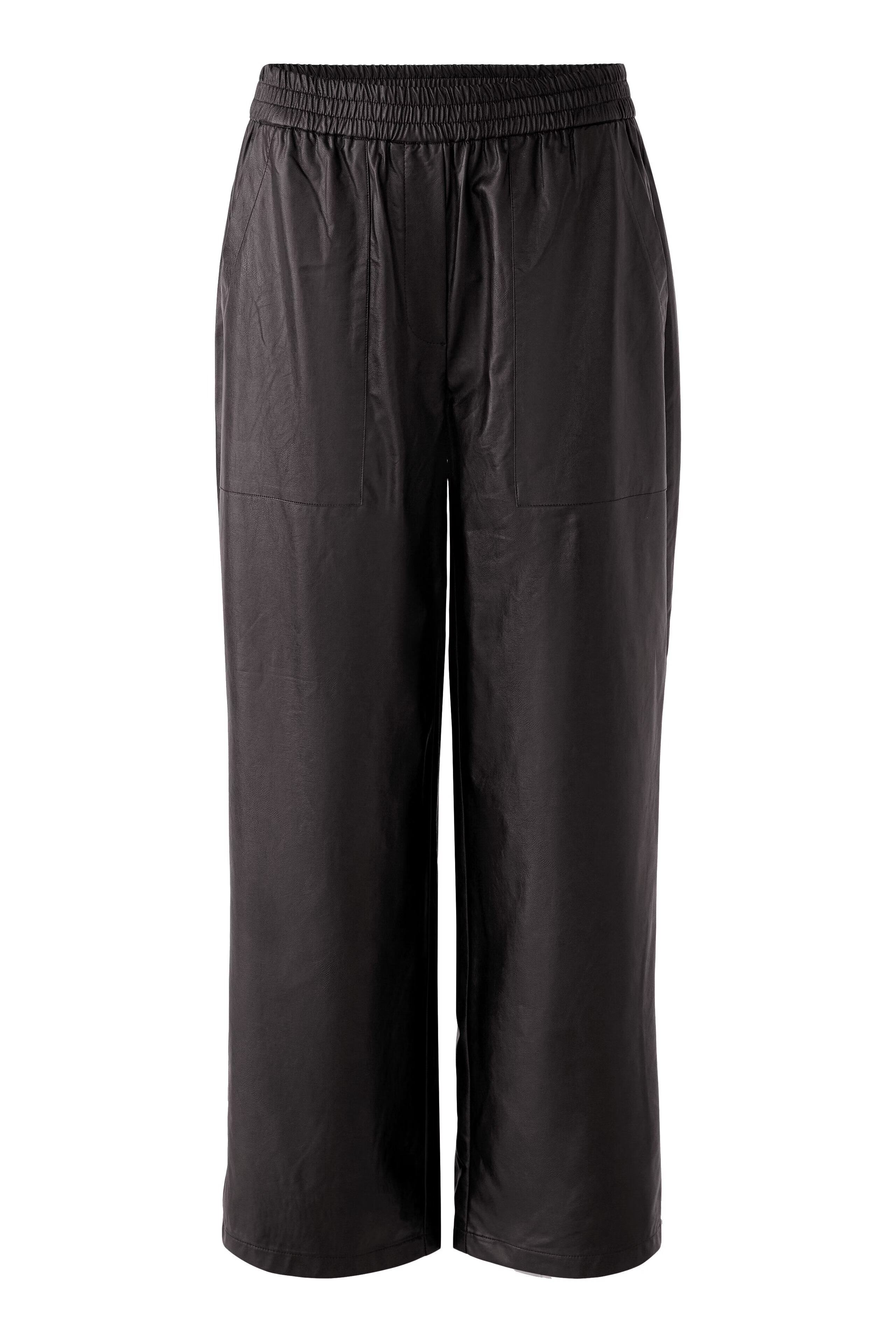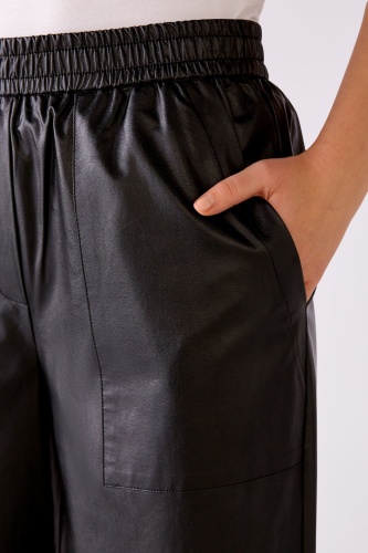 На сайте указаны российские размеры. Брюки из сверхмягкой синтетической кожи, пропитанной вискозой внутри. Удобные, свободного кроя укороченной длины. Джоггер с эластичными манжетами. Отличительные карманы с наклонным отверстием. Рост модели 178 см. Длина в размере 44: 68 см
