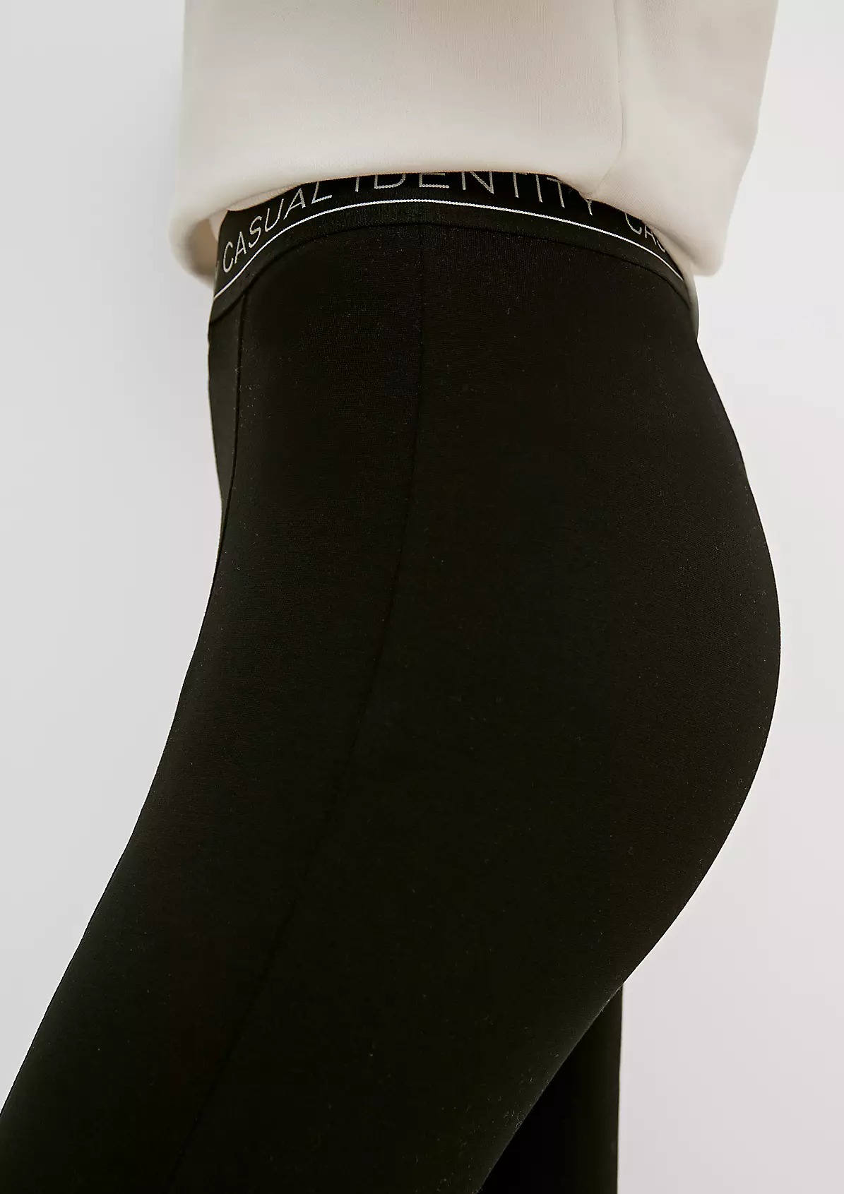 На сайте указаны российские размеры. Спортивные облегающие леггинсы с разрезами спереди. Эластичная резинка-пояс с надписью.