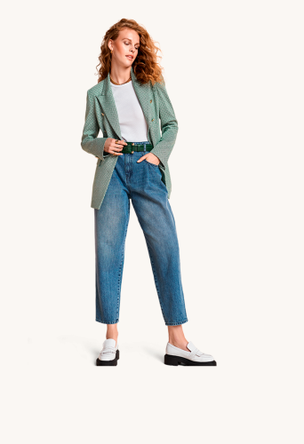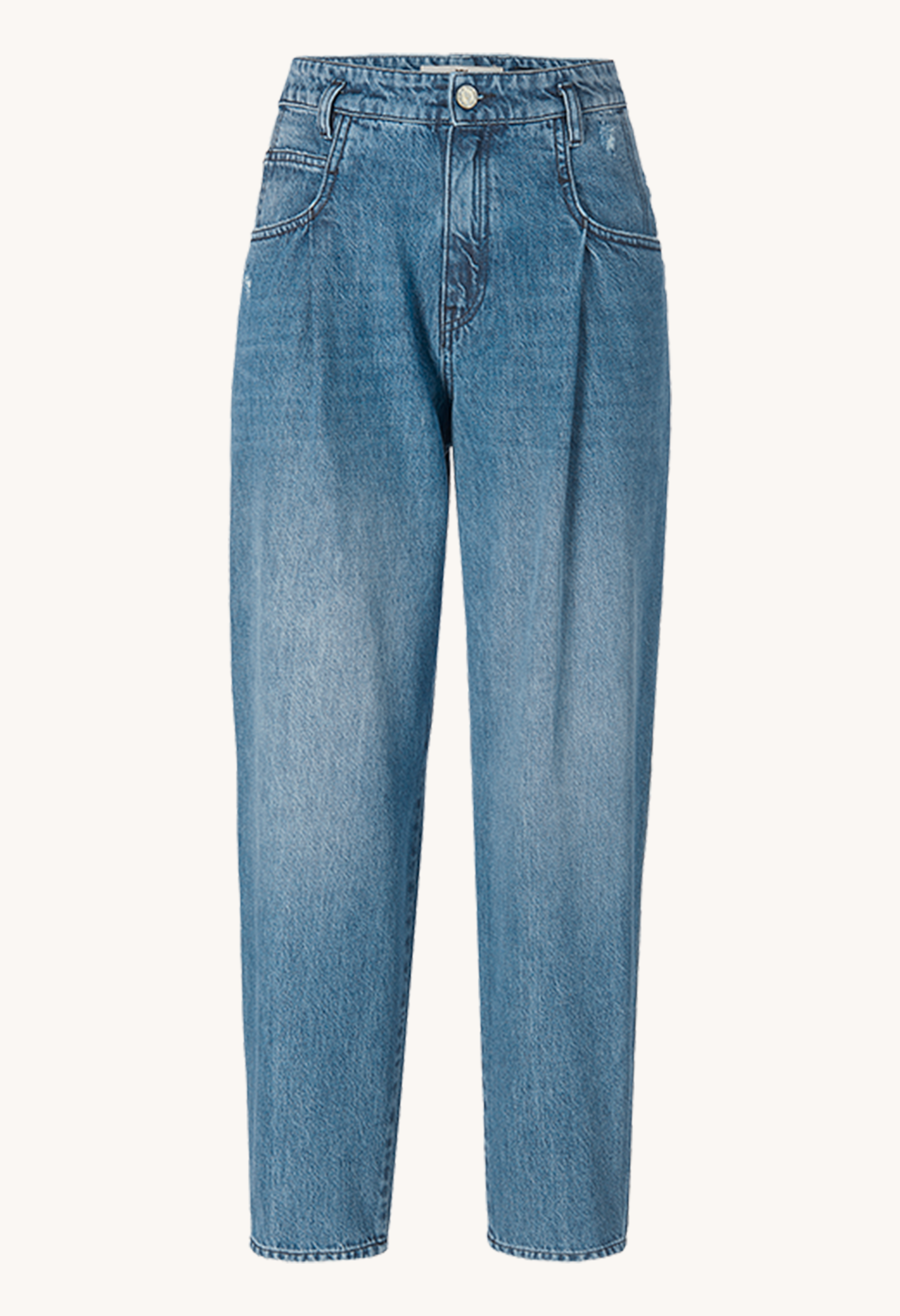 На сайте указаны российские размеры. Широкие вверху, узкие внизу: морковные брюки возвращаются в моду. Мы считаем, что это абсолютно правильно. При правильном сочетании с подходящей тканью этот тип брюк становится стильной модной вещью. Эти джинсы из повседневного аутентичного денима, не содержащего эластана, прекрасно выглядят в стиле ретро. Он предлагает вам сочетать его, например, с красивой блузкой. Конечно, свободно заправленный в пояс. Рост модели 177 см.