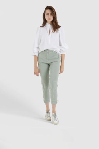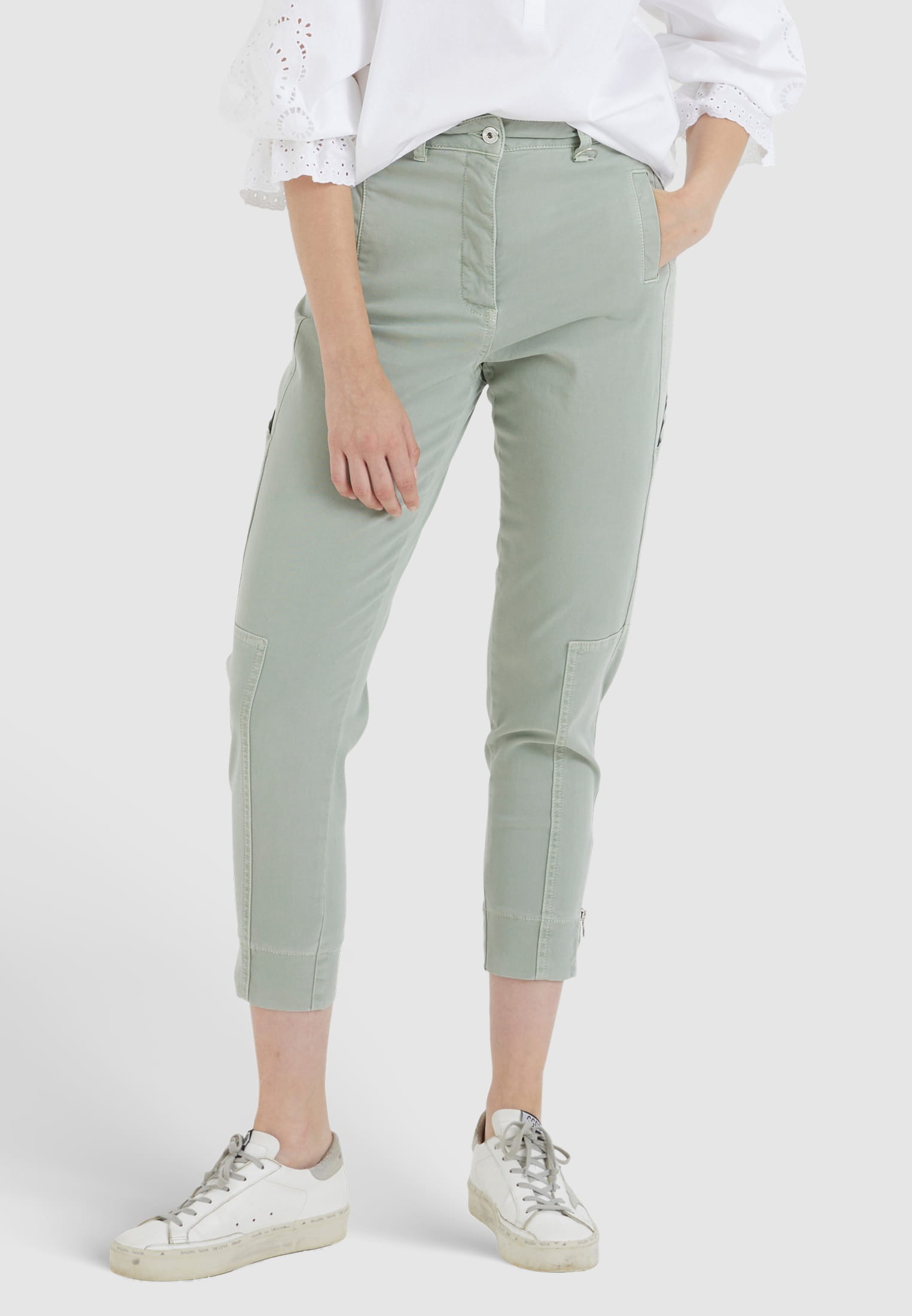 Современные брюки с высокой талией из линии Eco Friendly отличаются контрастными швами и зауженными штанинами. Подол регулируется застежкой-молнией. Материал содержит устойчивое содержание лиоцелла.